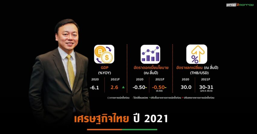 นายยรรยง ไทยเจริญ รองผู้จัดการใหญ่อาวุโส ประธานเจ้าหน้าที่บริหาร กลุ่มงาน Economic Intelligence Center ธนาคารไทยพาณิชย์ (EIC) เปิดเผยถึงภาพรวมเศรษฐกิจไทยประจำไตรมาส1ปี 2464 ว่า EIC ได้ปรับเพิ่มอัตราการขยายตัวทางเศรษฐกิจไทย (GDP) ในปีนี้เพิ่มเป็นเติบโต 2.6% จากเดิมที่ประเมินไว้ที่ 2.2% โดยมีปัจจัยสนับสนุนจากภาคการส่งออกของไทยที่มีแนวโน้มฟื้นตัวเร็วกว่าคาด เพราะได้รับผลบวกจากการฟื้นตัวของเศรษฐกิจโลก โดยข้อมูลล่าสุดนั้นพบว่ามูลค่ากรส่งออกของไทยในช่วง2 เดือนที่ผ่านมา (ธันวาคม 2563-มกราคม 2564 ได้ปรับเพิ่มขึ้นมาเทียบเท่ากับช่วงก่อนเกิดโควิด-19 และคาดว่าในระยะต่อไปการส่งออกจะมีแนวโน้มปรับดีขึ้นต่อเนื่องตามทิศทางเศรษฐกิจโลกที่ฟื้นตัวจากการเร่งฉีดวัคซีนและมาตรการกระตุ้นเศรษฐกิจของประเทศต่างๆ โดยเฉพาะประเทศสหรัฐฯ ทำให้คาดการณ์ว่ามูลค่าส่งออกของไทยในปีนี้ จะขยาย 6.4% จากเดิมที่ตั้งเป้าไว้ที่ 4%