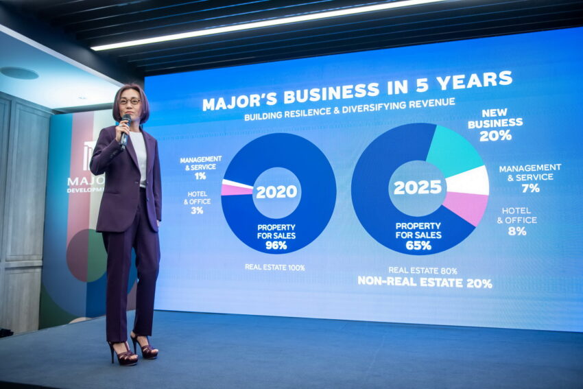 เมเจอร์ ดีเวลลอปเม้นท์ฯประกาศแผน 5 ปี ปรับโครงสร้างพอร์ตธุรกิจ เพิ่ม 2 ธุรกิจใหม่ ปี64 จ่อผุด 5 โครงการใหม่ รวมมูลค่า 11,300 ล้านบาท ทั้งเพิ่มรายได้จากธุรกิจให้เช่า-บริการมากขึ้น และเตรียมเปิดตัว 2 ธุรกิจใหม่ในปลายปี ใช้งบลงทุน 150 ล้านบาท ตั้งเป้าปี68 รายได้รวมแตะ 12,000 ล้านบาท