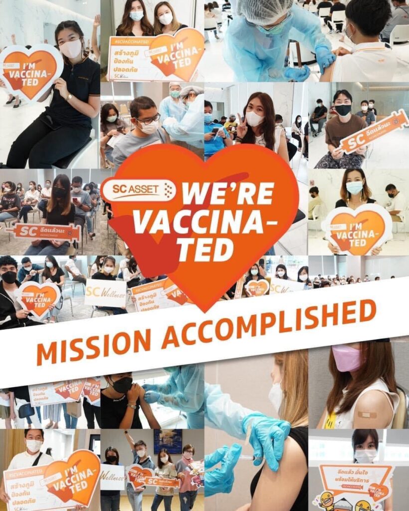 1. จัดสรรวัคซีนซิโนฟาร์ม โดยดำเนินการฉีดเข็มแรกให้กับพนักงานไปแล้ว และพนักงานทั้งหมดจะฉีดครบสองเข็มในไตรมาส 3 เพื่อเสริมภูมิคุ้มกันหมู่และสร้างความมั่นใจระหว่างพนักงานด้วยกัน พร้อมกับสร้างความอุ่นใจให้กับผู้มาติดต่อที่สำนักงานและโครงการทุกแห่ง