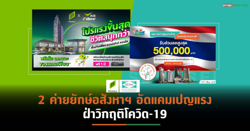 พฤกษาฯผนึก AIS อัดแคมเปญ “โปรแรงขั้นสุด ชีวิตสนุกกว่า”ติดอินเทอร์เน็ตบ้านความเร็วสูง และ “โปรแรงขั้นสุด ชีวิตสนุกกว่า” ซึ้อ 1 ฟรี 6 เฉพาะลูกค้าพฤกษาที่จองและโอนกรรมสิทธิ์ บ้านเดี่ยว ทาวน์เฮาส์ คอนโดมิเนียม มากกว่า 120 โครงการ ตั้งแต่วันนี้–30 ก.ย.64 และพิเศษสุดเฉพาะลูกค้าที่จอง–โอนภายในเดือน ก.ค.นี้ จะได้รับส่วนลดเพิ่มเติมสูงสุดอีก 800,000 บาท ด้านเสนาฯปรับแผนกู้วิกฤติสู้ โควิด–19 ขานรับพร้อมให้ความร่วมมือภาครัฐ ชูเซอร์วิสเซฟลูกค้า บริการขายออนไลน์ผ่าน 4 ช่องทาง ล่าสุดเปิดลิสต์บ้านเดี่ยว–คอนโดฯ 22 โครงการ อัดโปรฯ “SENA HERO VACCINE” สนับสนุนคนไทยฉีดวัคซีนช่วยชาติ รับส่วนลดสูงสุดถึง 500,000 บาท เริ่มตั้งแต่วันนี้– 15 ก.ย.64