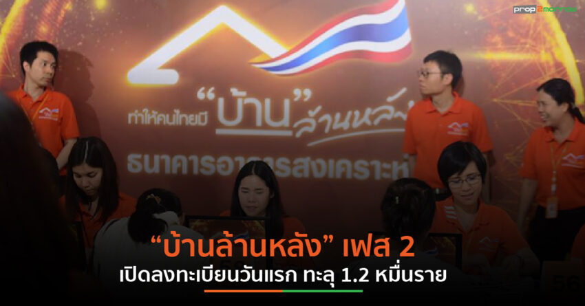 ธนาคารอาคารสงเคราะห์ เปิดลงทะเบียนโครงการสินเชื่อเพื่อที่อยู่อาศัย (โครงการบ้านล้านหลัง ระยะที่ 2) วันแรก ได้รับความสนใจจากผู้ที่ต้องการ บ้านใหม่ บ้านมือสอง และทรัพย์ NPA ของ ธอส. ในระดับราคาไม่เกิน 1,200,000 บาท เข้ามาลงทะเบียนผ่าน Application : GHB ALL เพื่อรับรหัสเข้าร่วมโครงการเป็นจำนวนมาก โดยตั้งแต่เวลา 9.00-16.00 น. มีจำนวนผู้ลงทะเบียนแล้วกว่า 12,890 ราย คิดเป็นวงเงินสินเชื่อ 15,468 ล้านบาท และมีลูกค้าที่เอกสารพร้อมยื่นคำขอกู้แล้วกว่า 1,000 ล้านบาท