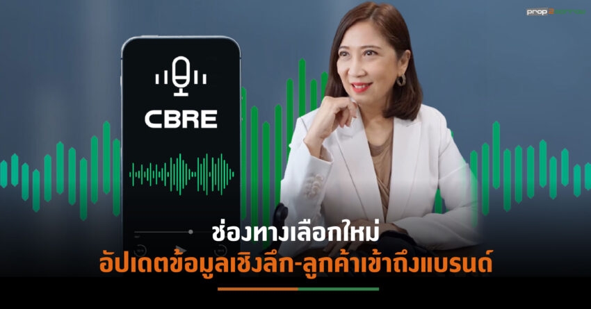 ซีบีอาร์อี เปิดตัว “CBRE Thailand Podcast” พอดแคสต์ อสังหาริมทรัพย์ในไทยเป็นครั้งแรก รวม 2 รายการ คือ The Highlighter from CBRE และ Open Floor from CBRE ช่องทางเลือกในการเผยแพร่ข้อมูลเชิงลึก ที่เข้าใจง่าย เปิดรับวิธีการใหม่ส่งผลให้แบรนด์จับต้องได้ ลูกค้ารู้สึกมีส่วนร่วม ครอบคลุมกลุ่มผู้ฟังที่หลากหลาย–ทั่วถึง