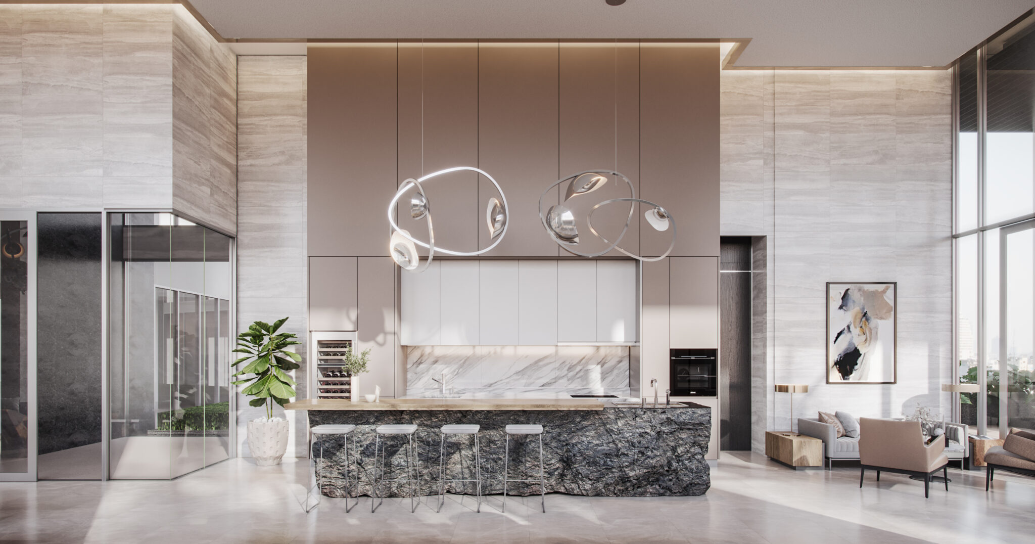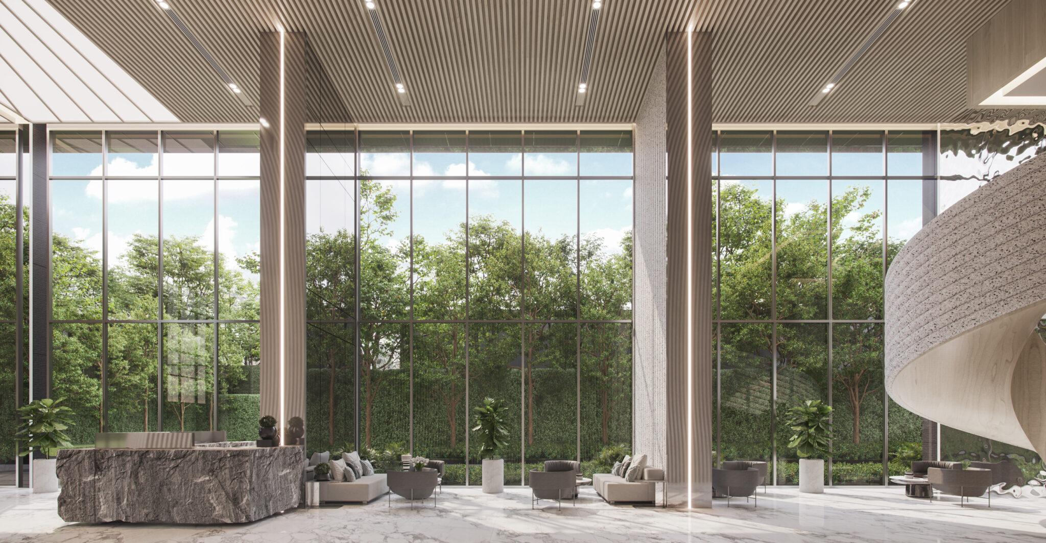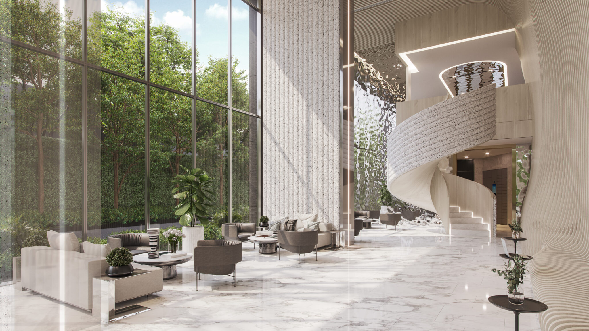 การออกแบบ interior เปิดรับทัศนียภาพภายนอก และ ออกแบบให้เชื่อมต่อกับ Landscape ดึงเอา Element ของน้ำ ที่เป็นองค์ประกอบของ Landscape ภายนอกเชื่อมต่อเข้ามา ภายในจึงเกิดเป็น Waterior ที่อยู่ใน Private Lobby ได้สัมผัสกับประสบการณ์ใหม่ที่ได้อยู่ท่ามกลางธรรมชาติ ได้ยินเสียงสายน้ำ ที่ไหลลงจากโขดหิน