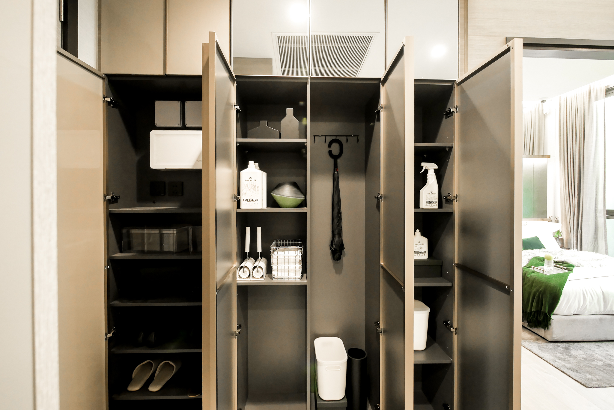 ห้องตัวอย่าง 1 ห้องนอน ขนาด 34.9 ตร.ม. เริ่มจากเปิดประตูเข้าห้องมาจะเป็นส่วน Foyer หน้าห้อง ทางโรงการ Built in ตู้สำหรับเก็บรองเท้า ได้ความสูงจากพื้นจรดฝ้า สามารถเก็บรองเท้าได้เยอะถูกใจแน่นอน โดยเฉพาะคุณสาวๆ หรือหนุ่มๆ สายแฟชั่นที่ชื่นชอบการแต่งตัว รับรองว่าเก็บของได้จุใจเลย