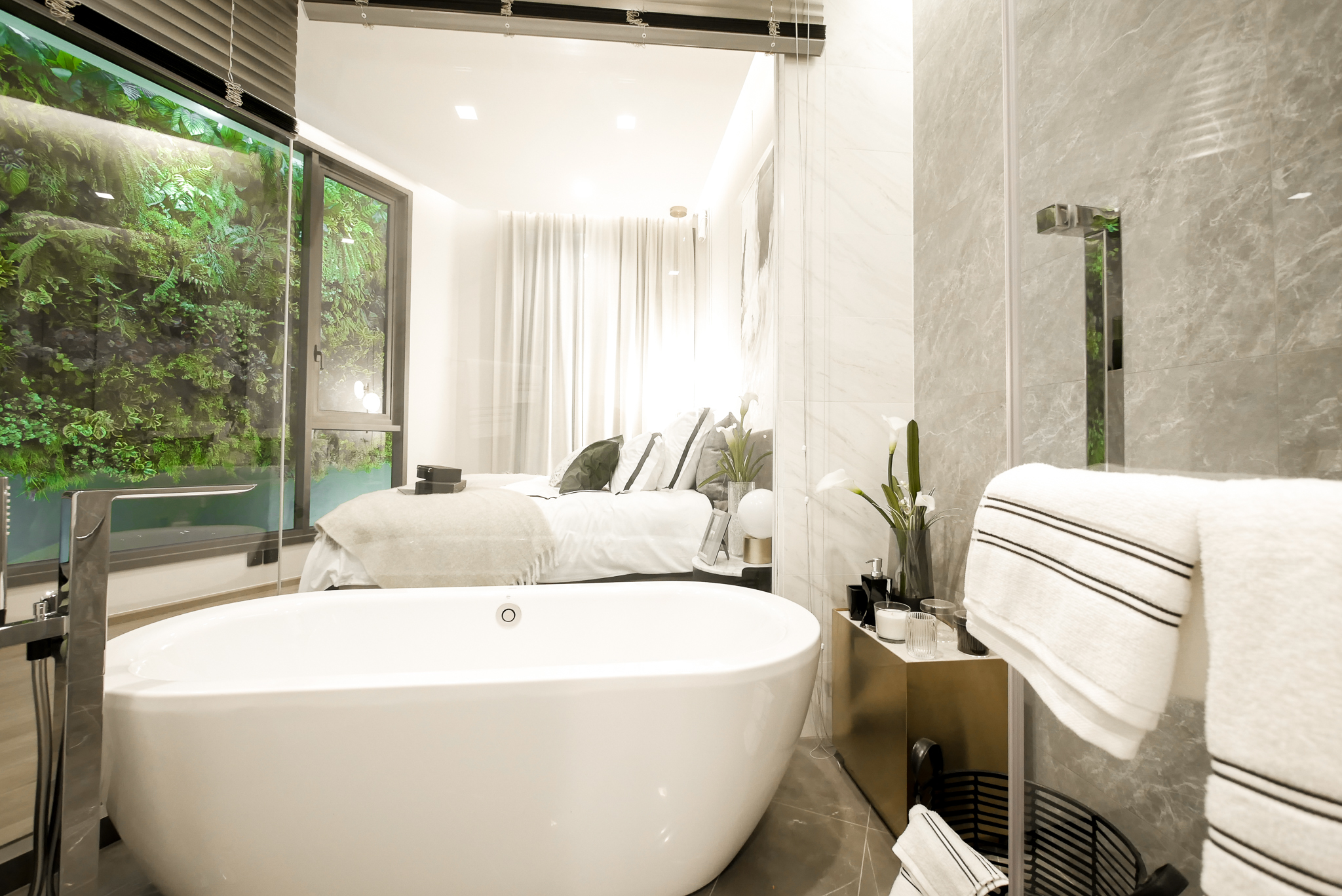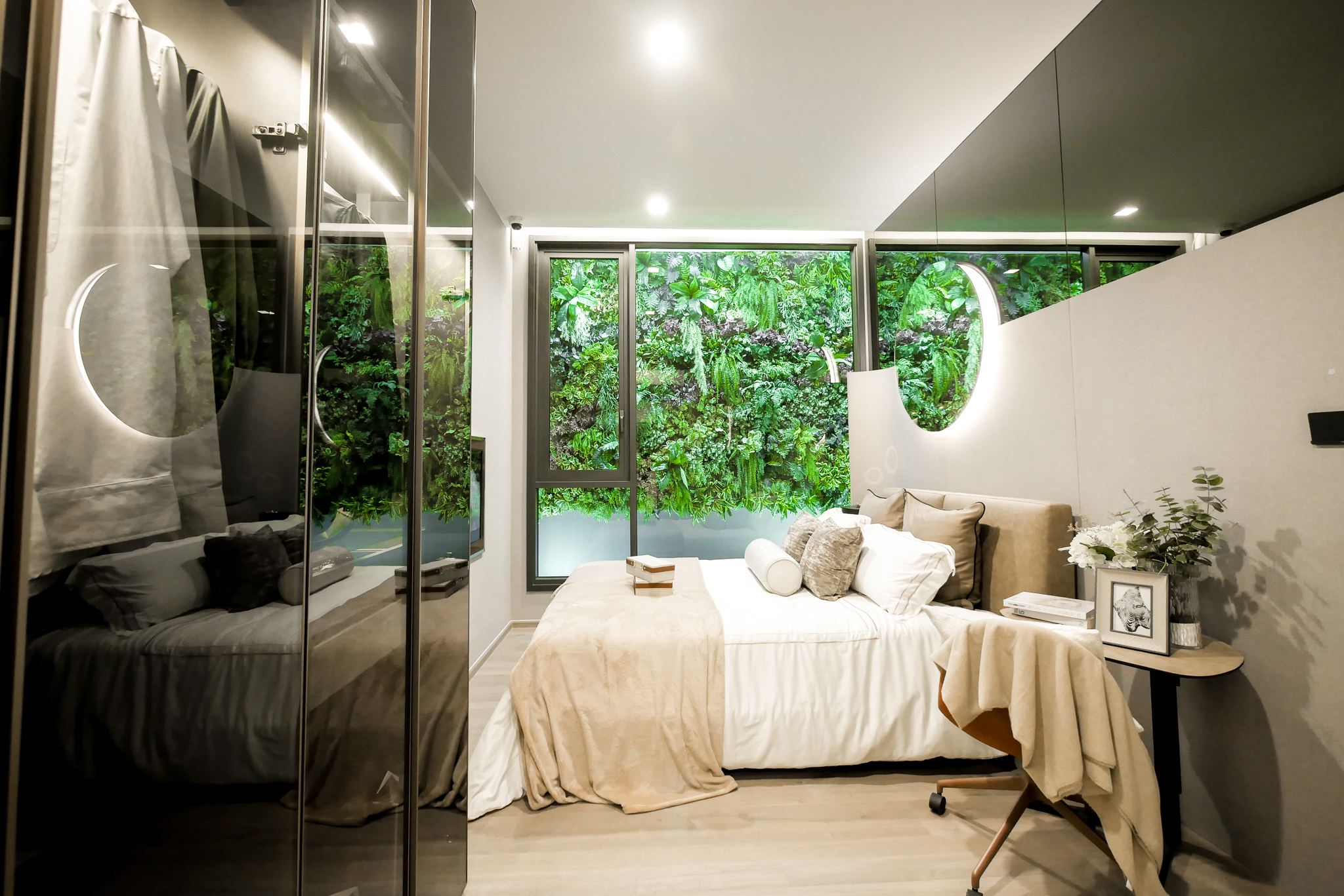 ด้านการออกแบบโครงการดึงเอา Element ของธรรมชาติซึ่งเป็นจุดเด่นของย่านนี้มาออกแบบโครงการให้เชื่อมโยงธรรมชาติเข้าสู่โครงการ ได้พักผ่อนทามกลางธรรมชาติ แต่ก็ยังอยู่ในทำเลที่เป็นใจกลางเมืองเดินทางสะดวกสบาย ออกแบบให้ในห้องพักทีพื้นที่ใช้สอยเยอะ ซึ่งตอบโจทย์กับการใช้ชีวิตรูปแบบใหม่ที่ให้ความสำคัญกับพื้นที่ใช้สอย ส่วนสเปกวัสดุต่างๆ โครงการก็เลือกใช้ของดีคุ้มค่า ในราคาที่สามารถจับต้องได้ สำหรับใครที่สนใจลองเข้ามาชมห้องตัวโครงการ มาสัมผัสกับบรรยากาศ ความหรูหรา ก่อนที่จะตัดสินใจ