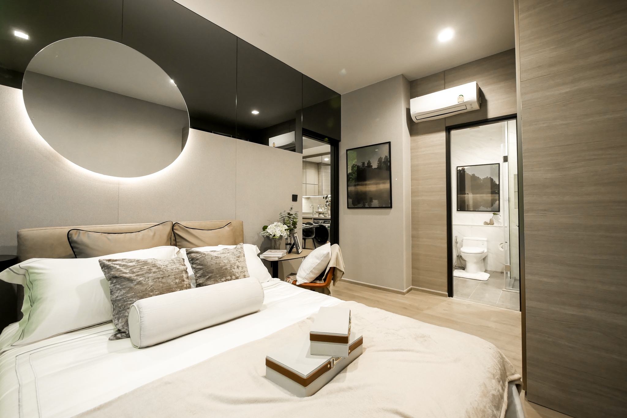สำหรับห้องที่เป็นไฮไลท์ของ Type นี้ เป็นห้อง Master Bedroom ห้องนอนใหญ่ที่ได้พื้นที่ห้องมุม ได้กระจกบานใหญ่ทั้ง 2 ด้าน ทำให้ห้องยิ่งดูโปร่ง กว้าง การจัดวางเตียงสามารถนอนเทควิวอุทยานสวนจตุจักรได้