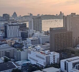 ของอาคาร ที่สื่อความหมายถึงการแอคทีฟและไม่หยุดนิ่ง สร้างความสนุกสนานอยู่ตลอดเวลา โทนสีและการตกแต่งเน้นไปทางธรรมชาติยามเย็นช่วงตะวันตกดิน เนื่องจากศรีราชาเป็นเมืองของทะเลและท่าเทียบเรือ จึงได้นำเอกลักษณ์ดังกล่าวเข้ามาผสมผสานในรูปแบบของ Modern Art Geometric