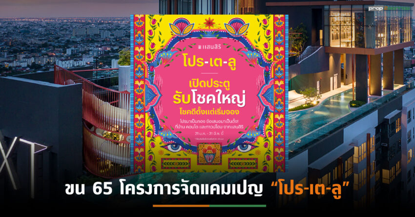 แสนสิริฯ ขานรับมาตรการรัฐ ส่งแคมเปญเสริมทัพ “โปร-เต-ลู” เปิดประตูรับโชคใหญ่จากแสนสิริด้วยข้อเสนอสุดพิเศษตั้งแต่ต้นปี รับ 3 เทศกาลมงคลและความสุข ปีใหม่ – ตรุษจีน – วาเลนไทน์ สนับสนุนคนไทยมีบ้านง่ายขึ้น เสริมมาตรการลดค่าธรรมเนียมโอน/จดจำนองบ้าน – คอนโดเหลือ 0.01 และเกณฑ์ใหม่ LTV ที่ประกาศกระตุ้นอสังหาฯ ลุ้นรับทองคำหนักสูงสุด 22 บาท และโปรพิเศษมากมายเมื่อจองคอนโดมิเนียมแสนสิริ* พร้อมรับโชคต้นปีสูงสุด 2 ล้านบาท อยู่ฟรีนาน 2 ปี หรือโชคใหญ่ผ่อนสบาย 3 ปี จากโครงการบ้านและทาวน์โฮมของแสนสิริ* รวม 65 โครงการทั่วประเทศ เริ่ม 21 ม.ค. – 31 มี.ค. 65 นี้ รุกไตรมาสแรก วางเป้าหมายอดขาย 8,000 ล้านบาท