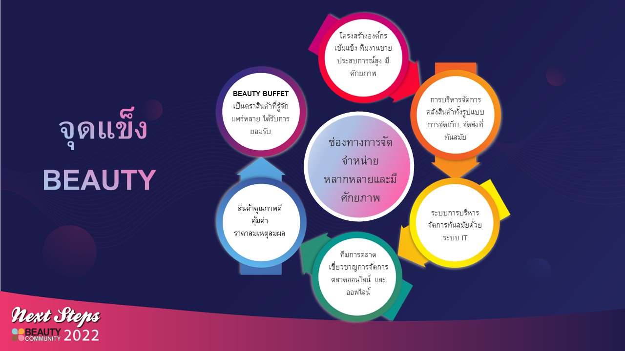 นอกจากนี้ BEAUTY ยังมีการปรับโครงสร้างการดำเนินงาน การบริหาร (Re Structuring) ครั้งใหญ่ ลดขนาดองค์กรให้เหมาะสมกับรูปแบบธุรกิจ และสถานการณ์เศรษฐกิจที่เปลี่ยนแปลง ส่งผลให้บริษัทสามารถลดต้นทุนการผลิต การขาย และค่าใช้จ่ายในการบริหารได้อย่างต่อเนื่อง ขณะที่ยอดขายทยอยปรับตัวเพิ่มขึ้นอย่างต่อเนื่อง