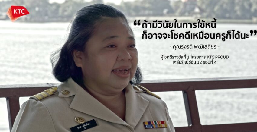 “เคทีซีหวังว่าเรื่องราวในมุมเล็กๆ ของคุณครูรุ่งรดี จะเป็นอีกหนึ่งแรงขับเคลื่อนให้คนไทยมีกำลังใจในการตามหาความฝันและทำสิ่งที่ฝันให้เป็นความจริง และขอเชิญชวนสมาชิกบัตรกดเงินสด “เคทีซี พราว” และสมาชิกสินเชื่อทะเบียนรถมอเตอร์ไซค์ “เคทีซี พี่เบิ้ม” ร่วมสมัครและลงทะเบียนเพื่อลุ้นเป็นหนึ่งในผู้โชคดีเคลียร์หนี้ โดยในปี 2565 นี้ เคทีซีได้เพิ่มรางวัลมากขึ้นกว่าเดิมรวมกว่า 600 รางวัล ลงทะเบียนครั้งเดียวสามารถลุ้นรับรางวัลตลอดทั้งโครงการ คลิก www.ktc.co.th/cleardebt2022 ด้วยกติกาง่ายๆ รับ 1 สิทธิ์ลุ้น เมื่อจ่ายเงินตรงตามเวลาเรียกเก็บ หรือกด-รูด-โอน-ผ่อนทุก 2,000 บาท และคงค้าง 15 วัน รับสิทธิ์ได้ไม่อั้น สอบถามรายละเอียดเพิ่มเติมได้ที่ KTC PHONE 02 123 5000 กด 6 กด 2 สนใจสมัครสมาชิกบัตรกดเงินสด “เคทีซี พราว” ได้ที่ศูนย์บริการสมาชิก “เคทีซี ทัช” ทุกสาขาทั่วประเทศ หรือคลิก https://ktc.today/PROUD-Apply สมัครสมาชิกสินเชื่อทะเบียนรถมอเตอร์ไซค์ “เคทีซี พี่เบิ้ม” คลิก https://ktc.today/PBerm-Apply”นางสาว พิชามน กล่าวในที่สุด