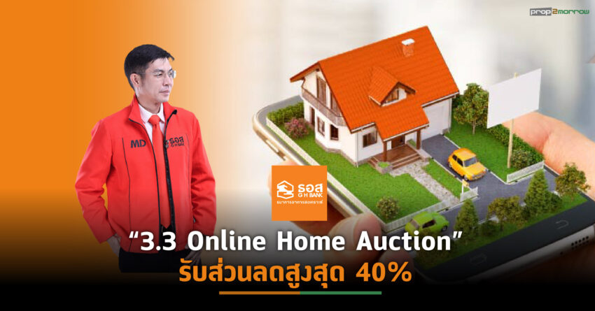 แบงก์อาคารสงเคราะห์ จัดงาน “3.3 Online Home Auction ประมูลบ้านมือสอง ธอส. ออนไลน์” ผ่านแอปพลิเคชัน: G H Bank Smart NPA วันที่ 3 มีนาคมนี้ ขนทรัพย์เด่นทั่วประเทศ 333 รายการมาจำหน่ายในราคาพิเศษ พร้อมส่วนลดสูงสุดถึง 40% จากราคาปกติ หากโอนกรรมสิทธิ์ภายในวันที่ 31 พฤษภาคมนี้รับส่วนลด On Top เพิ่มอีก 10% จากราคาที่ปิดประมูล