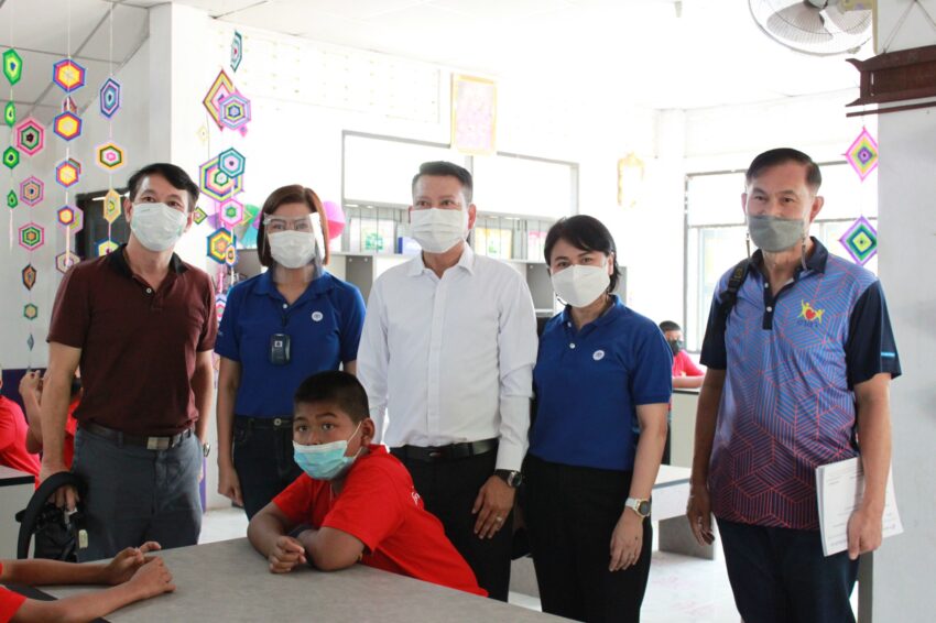 นายทนงศักดิ์ ธนปุณยนันท์ (ขวา) หัวหน้ากลุ่มจิตอาสา ผู้ปฏิบัติงานฝ่ายออกแบบและบริหารงานก่อสร้าง การไฟฟ้าฝ่ายผลิตแห่งประเทศไทย(กฟผ.) และ นางวิภาวี สร้อยระย้า (ที่ 2 จากซ้าย) ผู้ช่วยผู้อำนวยการ สายงานขายโครงการ บริษัท โมเดอร์นฟอร์มกรุ๊ป จำกัด (มหาชน) หรือ MODERN เป็นตัวแทนส่งมอบอุปกรณ์การเรียนให้กับโรงเรียนบ้านไทยทวี จังหวัดกำแพงเพชร โดยมีนายสดุดี พุทธัง(กลาง) นายอำเภอคลองขลุง กำแพงเพชร ให้เกียรติร่วมงาน ณ โรงเรียนบ้านไทยทวี จังหวัดกำแพงเพชร เมื่อเร็วๆนี้