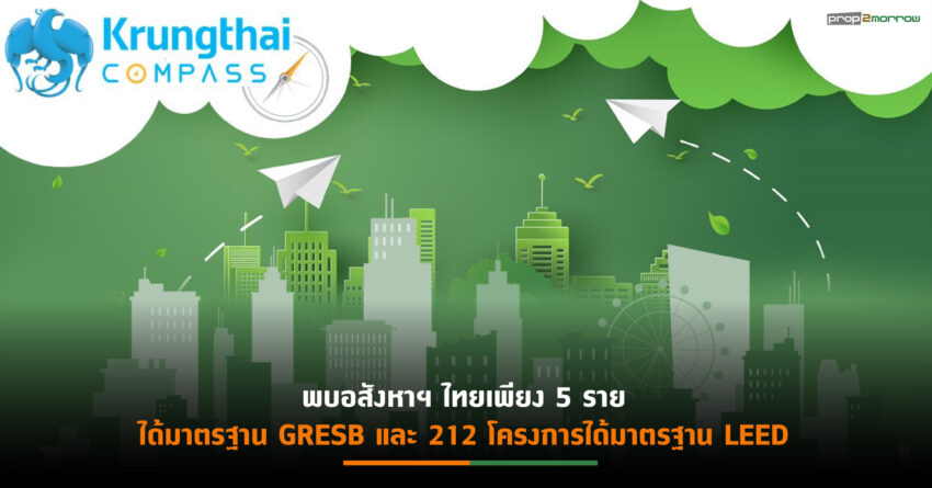 ศูนย์วิจัย Krungthai COMPASS ประเมินกระแส Carbon Neutrality และ Net Zero จะเป็นแรงผลักดันให้ผู้พัฒนาอสังหาฯ ต้องปรับปรุงการดำเนินงานให้ได้มาตรฐาน ESG โดยเฉพาะอย่างยิ่งในด้านสิ่งแวดล้อม เพื่อรักษาและขยายฐานลูกค้า รวมถึงส่งเสริมผลการดำเนินงาน แนะผู้ประกอบการทำความรู้จัก GRESB และ LEED ซึ่งเป็นมาตรฐานด้าน ESG ของธุรกิจอสังหาฯ ที่ได้รับการยอมรับในระดับโลก โดยทั้ง 2 มาตรฐานมีเกณฑ์การประเมินที่คล้ายกัน เช่น การลดการใช้พลังงานไฟฟ้าและน้ำ การลดก๊าซเรือนกระจก และการใช้วัสดุก่อสร้างที่เป็นมิตรต่อสิ่งแวดล้อม ชี้ในปัจจุบัน มีผู้พัฒนาอสังหาฯ ไทยที่ได้มาตรฐาน GRESB จำนวน 5 ราย และมีโครงการอสังหาฯ ในไทยที่ได้มาตรฐาน LEED จำนวน 212 โครงการ
