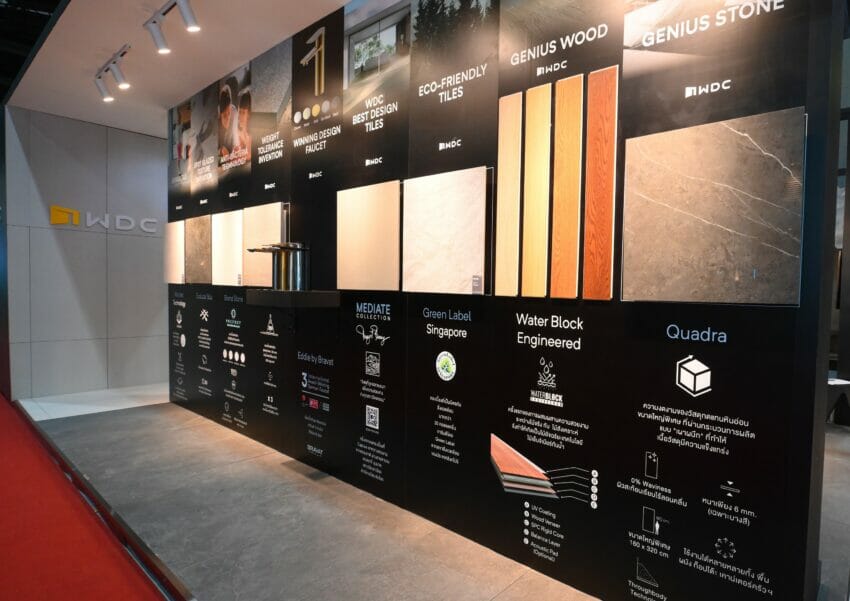 สำหรับไฮไลท์ของผลิตภัณฑ์ WDC ที่จะนำมาเผยโฉมในปีนี้ ได้แก่ มิ ดิ เอท คอลเลคชัน (Mediate Collection) กระเบื้อง คอลเลคชันใหม่ ที่จำลองคุณลักษณะสวยงามของหินทรายและทลายข้อจำกัดของหินทรายจริงเมื่อโดนน้ำแล้วจะเกิดรอยด่าง จากการออกแบบจาก “ดวงฤทธิ์ บุนนาค” สถาปนิกไทยรางวัลระดับโลก และการนำเสนอกระเบื้องนวัตกรรมล่าสุด ไมโครเทค เทคโนโลยี Microtec Technology มีคุณสมบัติเด่นในการกันลื่นเมื่อเปียกน้ำ แต่มีผิวสัมผัสนุ่มสบายเท้าเมื่อแห้ง ประกอบด้วย 3 คอลเลคชัน คือ Enzo ลวดลายหินปูน Lagoon ลวดลายหินทราย Legacy ลวดลายหินอ่อน
