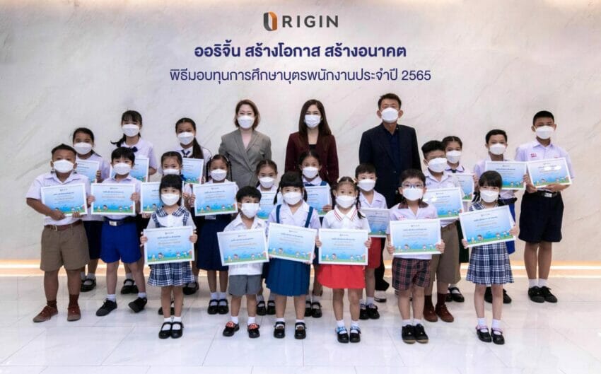 นางอารดา จรูญเอก ประธานอำนวยการ บริษัท ออริจิ้น พร็อพเพอร์ตี้ จำกัด (มหาชน) หรือ ORI พร้อมด้วย สุรินทร์ สหชาติโภคานันท์ ประธานเจ้าหน้าที่บริหารร่วม บริษัท บริทาเนีย จำกัด (มหาชน) และ จตุพร วิไลแก้ว ประธานเจ้าหน้าที่บริหาร บริษัท พรีโม เซอร์วิส โซลูชั่น จำกัด ต่อยอดโครงการเพื่อสังคม “ORIGIN GIVE” เดินหน้าสร้างสรรค์กิจกรรมในองค์กร พร้อมสร้างขวัญกำลังใจ ใส่ใจคุณภาพชีวิตครอบครัวพนักงาน จัดพิธีมอบทุนการศึกษาแก่บุตรพนักงาน ประจำปี 2565 “ออริจิ้น สร้างโอกาส สร้างอนาคต” จำนวน 26 ทุน มูลค่าทุนละ 5,000 บาท รวมทั้งสิ้น 130,000 บาท ตั้งแต่ระดับชั้นอนุบาล 1 ถึงระดับชั้นประถมศึกษาปีที่ 6 ที่มีความประพฤติดี ผลการเรียนเด่น โดยสนับสนุนและมอบโอกาสทางการศึกษาให้แก่เยาวชนให้เติบโตอย่างมีคุณภาพ รวมถึงเป็นการแบ่งเบาภาระค่าใช้จ่ายการศึกษาให้กับพนักงานอีกด้วย