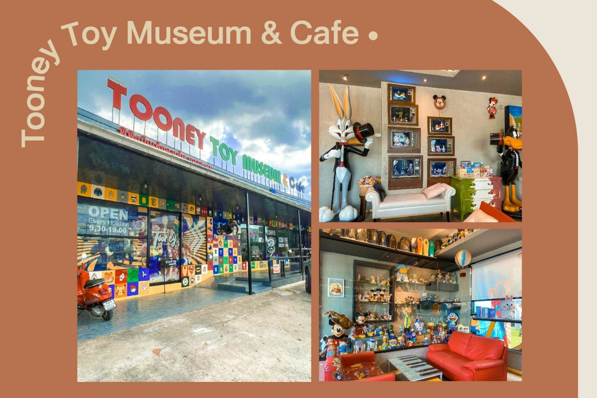 Tooney Toy Museum&Cafe พิพิธภัณฑ์ของเล่น และคาเฟ่ชิคๆ ที่จะพาคุณย้อนบรรยากาศกลับไปวัยเด็กอีกครั้ง ที่นี่เต็มไปด้วยของเล่นของสะสมหลากหลายแนว หากวันไหนเบื่อๆ ลองมาที่นี่คุณจะได้พบกับความสุขในวัยเด็กที่ขาดหายไปอีกครั้ง การได้พักผ่อนกับสิ่งที่ชื่นชอบจะช่วยเติมเต็มแรงใจ เติมเต็มพลัง