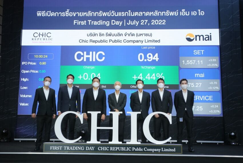นายธีร์ จารุศร กรรมการผู้จัดการ ฝ่ายวาณิชธนกิจ บริษัทหลักทรัพย์ เมย์แบงก์ (ประเทศไทย) จำกัด (มหาชน) ในฐานะที่ปรึกษาทางการเงิน และผู้จัดการการจัดจำหน่ายและรับประกันการจำหน่ายหุ้นสามัญเพิ่มทุน บริษัท ชิค รีพับบลิค จำกัด (มหาชน) กล่าวว่า เมย์แบงก์ มีความยินดีที่ได้ร่วมเป็นส่วนหนึ่งในความสำเร็จของ บริษัท ชิค รีพับบลิค จำกัด (มหาชน) หรือ CHIC ในการเข้าซื้อขายหุ้นในตลาดหลักทรัพย์เอ็ม เอ ไอ (mai) กลุ่มอุตสาหกรรมบริการ (Service) หมวดธุรกิจพาณิชย์ (Commerce) เชื่อว่า CHIC จะได้รับความสนใจจากนักลงทุนทั้งในการซื้อขายวันแรกและช่วงต่อจากนี้ โดยการเสนอขายหุ้นไอพีโอ CHIC ในวันที่ 18-21 กรกฎาคม 2565 ที่ผ่านมา มีการตอบรับจากนักลงทุนเป็นอย่างดี