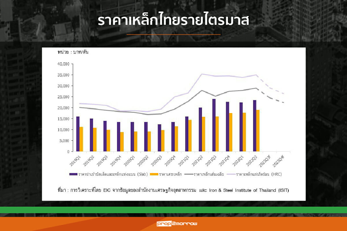 ราคาเหล็กปรับตัวสูงขึ้นอย่างก้าวกระโดดในช่วง 2 ปีที่ผ่านมา โดยเฉพาะในปี 2564 มีสาเหตุจากปริมาณการผลิตเหล็กของประเทศจีนที่ลดลงจากมาตรการด้านสิ่งแวดล้อม และการควบคุมคุณภาพเหล็ก ขณะที่ในปี 2565 เกิดความตึงเครียดของสงครามระหว่างรัสเซียและยูเครน ประกอบกับมาตรการ Zero COVID ของจีน ที่มีการล็อกดาวน์เพื่อลดการระบาดของ COVID-19 สายพันธุ์โอมิครอนให้เหลือศูนย์ มีส่วนทำให้ซัพพลายเหล็กจากจีนลดลง จากการปิดเหมืองแร่เหล็กและถ่านหิน และโรงงานเหล็ก ส่งผลให้ราคาน้ำมันปรับตัวขึ้นต่อเนื่องมาตั้งแต่ไตรมาสที่ 1 แต่ต่อเนื่องมาจนถึงช่วงครึ่งแรกของปี 2565 ปรับตัวขึ้นต่อเนื่องจากปีก่อน