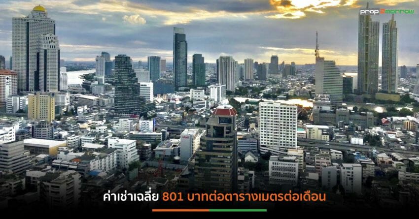 ด้านราคาค่าเช่าอาคารสำนักงานโดยเฉลี่ยปรับเพิ่มขึ้นอย่างช้าๆ โดยเฉลี่ยอยู่ที่ 801 บาทต่อตารางเมตรต่อเดือน ซึ่งยังต่ำกว่าอัตราการเติบโตในช่วง 10 ปีที่ผ่านมาที่มีค่าเฉลี่ย 3.6% ต่อปี โดยอาคารเกรด A ปรับเพิ่มขึ้นมากที่สุด 1.1% ส่วนอาคารเกรด C อัตราค่าเช่าติดลบในไตรมาสนี้