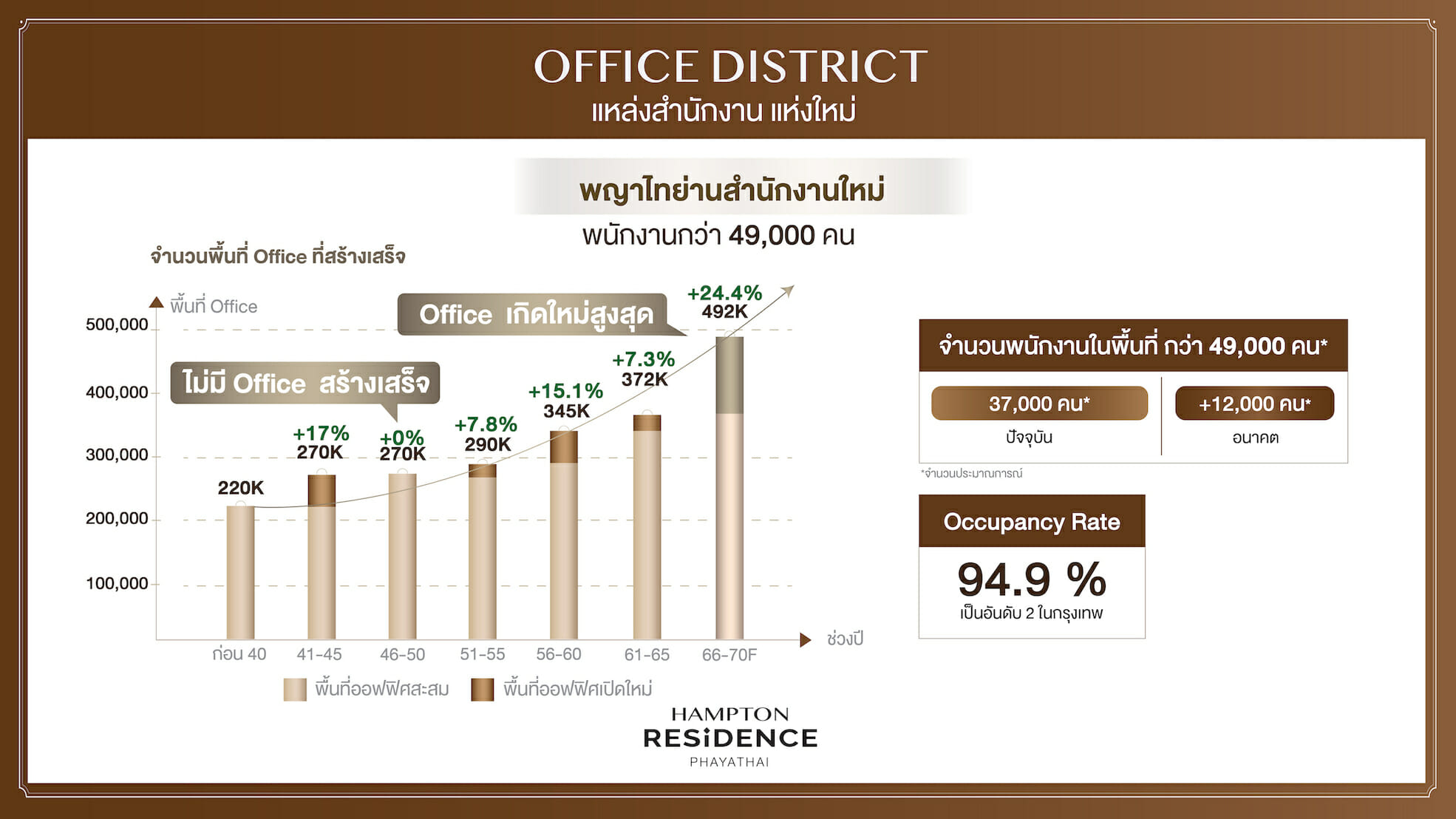นายสิริพงศ์ ศรีสว่างวงศ์ Head of Investment Property Program บริษัท ออริจิ้น พร็อพเพอร์ตี้ จำกัด (มหาชน) หรือ ORI และประธานเจ้าหน้าที่บริหาร บริษัท พาร์ค ลักชัวรี่ จำกัด กล่าวว่า ทำเลย่านพญาไท ถือเป็นเป้าหมายสำคัญของบริษัทข้ามชาติที่ต้องการเข้ามาตั้งสำนักงานในไทย เนื่องจากเป็นทำเลติดรถไฟฟ้าสายสีเขียวซึ่งสามารถเชื่อมต่อไปยังย่านใจกลางธุรกิจได้ง่าย ขณะเดียวกันยังเป็นสถานีเชื่อมต่อกับรถไฟฟ้าแอร์พอร์ต เรลลิงก์ เพื่อเดินทางไปยังสนามบินสุวรรณภูมิได้สะดวก ส่งผลให้ย่านพญาไทจึงเป็นทำเลที่มีอัตราการเช่าอาคารสำนักงาน สูงเป็นอันดับ 2 ของกรุงเทพฯ ด้วยอัตราการเช่าเฉลี่ย 94.9% รวมทั้งยังส่งผลให้ตลาดเช่าที่อยู่อาศัยแบบ Long Stay ในย่านนี้คึกคักตามไปด้วย