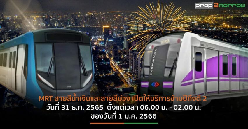 นายภคพงศ์ ศิริกันทรมาศ ผู้ว่าการการรถไฟฟ้าขนส่งมวลชนแห่งประเทศไทย (รฟม.) กล่าวว่า รฟม. ในฐานะหน่วยงานที่กำกับดูแลการให้บริการรถไฟฟ้ามหานคร สายเฉลิมรัชมงคล (MRT สายสีน้ำเงิน) และรถไฟฟ้ามหานคร สายฉลองรัชธรรม (MRT สายสีม่วง) ได้เตรียมความสะดวกในการเดินทางและเชื่อมต่อกับระบบขนส่งมวลชนอื่น ๆเนื่องในเทศกาลปีใหม่ 2566 ให้แก่ประชาชน โดยรฟม.ได้ร่วมมือกับบริษัททางด่วนและรถไฟฟ้ากรุงเทพ จำกัด (มหาชน) (BEM) ผู้ให้บริการเดินรถไฟฟ้าทั้งสองสาย ขยายเวลาการให้บริการรถไฟฟ้า MRT สายสีน้ำเงิน และสายสีม่วง โดยเปิดให้บริการตั้งแต่เวลา 06.00 น. ของวันที่ 31 ธันวาคม 2565 ถึงเวลา 02.00 น. ของวันที่ 1 มกราคม 2566