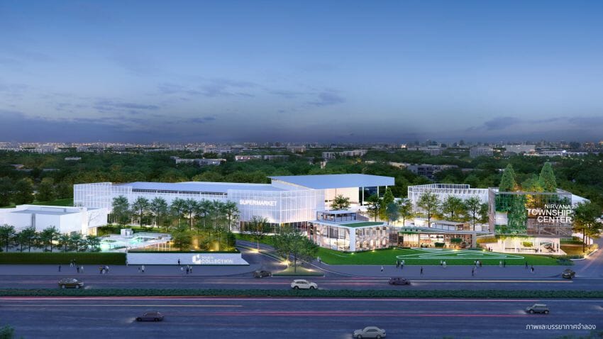 แลนด์มาร์คแห่งใหม่นี้มาพร้อมกับไลฟ์สไตล์คอมมูนิตี้ มอลล์ โดยใช้ชื่อว่า Nirvana Township Center ตั้งอยู่บนพื้นที่กว่า 22.4 ไร่ ที่จะถูกรังสรรค์ให้เป็นจุดศูนย์รวมความสะดวกสบายอย่างครบครัน ตอบโจทย์ทุกไลฟ์สไตล์ของการใช้ชีวิตโดยออกแบบให้เป็น NIRVANA TOWNSHIP CENTER ศูนย์รวมสิ่งอำนวยความสะดวก อาทิ ซูปเปอร์มาร์เก็ตพรีเมี่ยมขนาดใหญ่ที่พร้อมด้วยสินค้าคุณภาพ เช่น อาหารสด ผักและผลไม้นำเข้าจากต่างประเทศ ของใช้ในครัวเรือน รวมถึงเป็นแหล่งศูนย์รวมของร้านอาหารชื่อดัง ศูนย์บริการเพื่อสุขภาพ-ความงาม และฟิตเนส พร้อมด้วยพื้นที่สวนกลางแจ้งที่ออกแบบโดยเน้นการผสมผสานธรรมชาติเข้ามาช่วยในการออกแบบตัวโครงการ