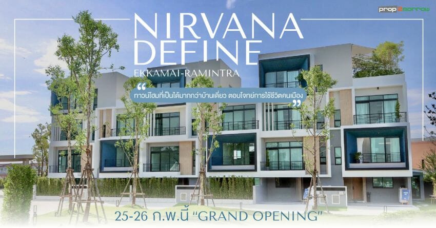 Nirvana Define เอกมัย-รามอินทรา ออกแบบในคอนเซ็ปต์ “The First Townhome with Rooftop Garden” เป็นพรีเมียมทาวน์โฮม นิยามใหม่ ที่มีความโดดเด่นในเรื่องของดีไซน์ การออกแบบบ้านให้เชื่อมต่อแสง ลม ธรรมชาติ พร้อมพื้นที่ Rooftop ที่ตอบโจทย์ฟังก์ชันการใช้งานของทุกคนในครอบครัว รวมถึงการเลือกใช้วัสดุเกรดพรีเมียม และได้มาตราฐานการก่อสร้าง และที่สำคัญ Nivarna Define เอกมัย-รามอินทรา อัพเกรดวัสดุที่ใช่เป็นเกรดพรีเมียม ทำให้เป็น พรีเมียมทาวน์โฮมแบรนด์แรกๆ ในราคาที่เอื้อมถึง เพราะการซื้อบ้านหนึ่งหลัง อาจจะเป็นครั้งแรก และครั้งเดียวในชีวิตจึงต้องเลือกบ้านที่คุ้มค่าและถูกใจที่สุด