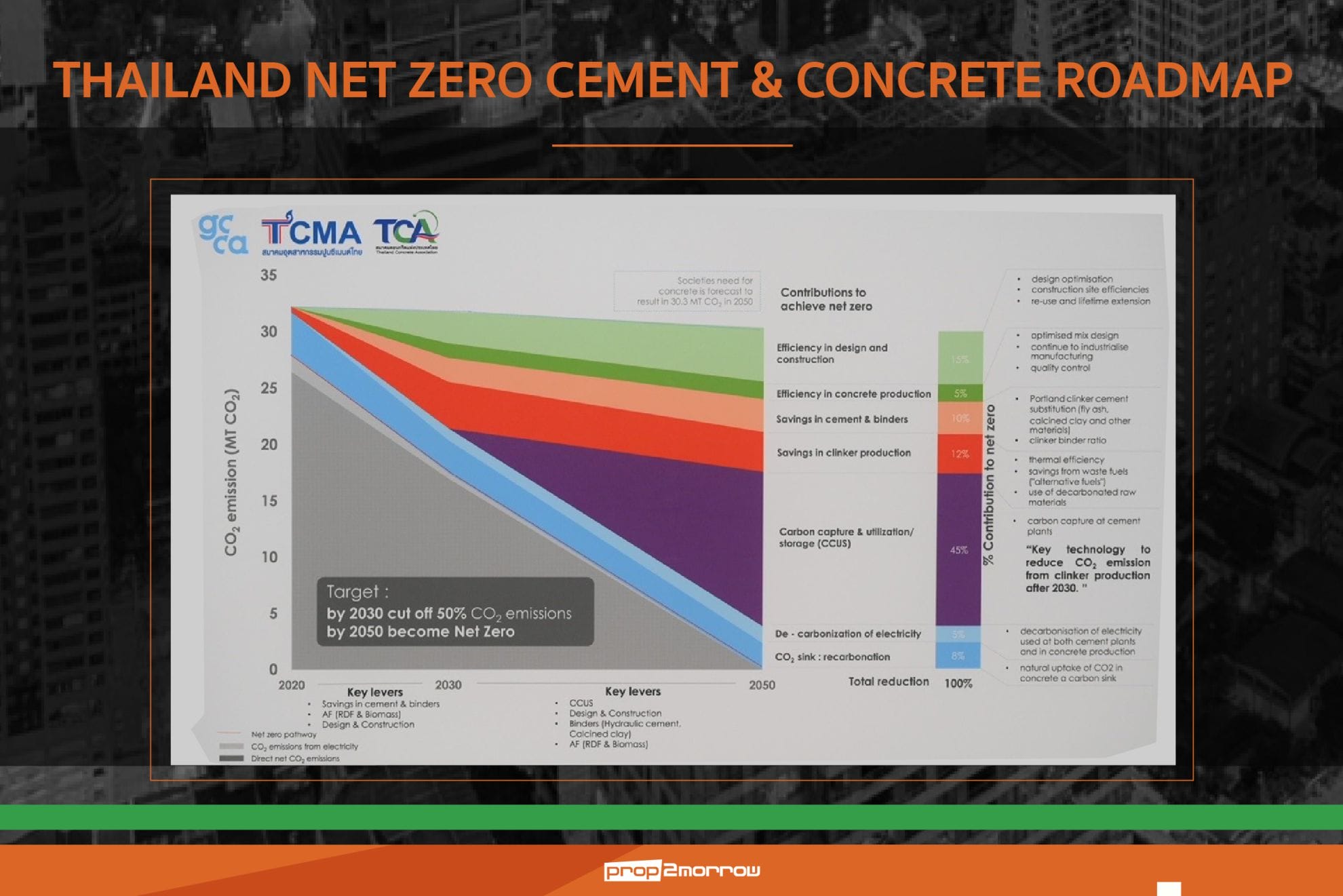 ขณะเดียวกัน TCMA พร้อมสนับสนุนนโยบายภาครัฐ Thailand Net Zero ให้สำเร็จตามเป้าหมาย ด้วยการให้ความร่วมมือ การสนับสนุนจากทุกภาคส่วน รวมถึงการเข้าใจในกลไกการทำงาน และเชื่อมโยงความร่วมมือระหว่างหน่วยงาน ทั้งในระดับโลก ระดับนโยบายของประเทศ ระดับหน่วยงาน ระดับพื้นที่ และผู้เกี่ยวข้อง เพื่อบรรลุตามเป้าหมายการขับเคลื่อน ‘MISSION 2023’ ตามที่กำหนดไว้