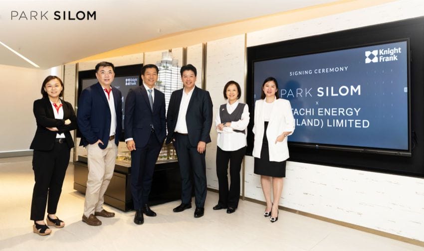 การลงนามสัญญาเช่าพื้นที่สำนักงานโครงการพาร์ค สีลม ในครั้งนี้นำทีมโดย นายสุธี ลิมปนชัยพรกุล(ที่ 3 จากซ้าย) ประธานอำนวยการ บริษัท นายณ์ เอสเตท จำกัด ผู้บริหารโครงการพาร์ค สีลม, ดร.วรวุฒิ วรุตตมพรสุ(ที่ 3 จากขวา) Country Managing Director บริษัท ฮิตาชิ เอนเนอร์ยี่ (ประเทศไทย) จำกัด, นายปัญญา เจนกิจวัฒนาเลิศ (ที่ 2 จากซ้าย) กรรมการบริหารและหัวหน้าส่วนงานพื้นที่สำนักงาน บริษัท ไนท์แฟรงค์ ประเทศไทย จำกัด