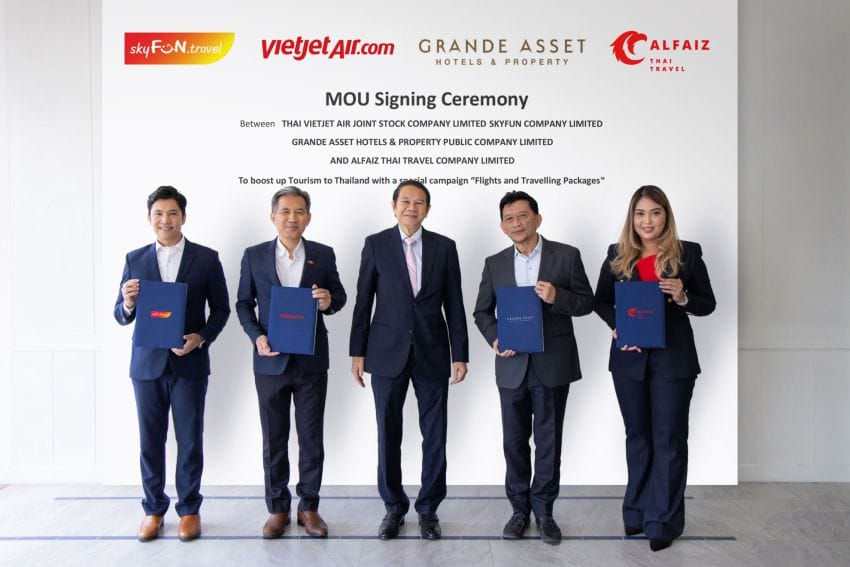 พร้อมกันนี้แกรนด์ แอสเอสฯ ยังได้ร่วมลงนามในบันทึกความเข้าใจกับสายการบินไทยเวียตเจ็ท Skyfun.travel และ บริษัทอัลฟาอิซ ไทย ทราเวล จำกัด นำเสนอแพ็คเกจด้านการท่องเที่ยว ทั้งตั๋วเครื่องบิน โรงแรม แพคเกจทัวร์ อาหารและเครื่องดื่ม สปา และบริการอื่นๆ ให้แก่นักท่องเที่ยวที่เดินทางเข้ามาในประเทศไทย ในแบบเอ็กซ์คลูซีฟด้วยราคาที่คุ้มค่า