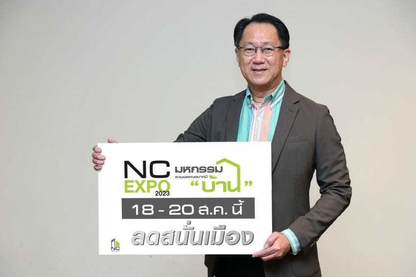 “งาน NC EXPO รวมพลคนอยากมีบ้าน ขอเชิญชวนร่วมเป็นเจ้าของบ้าน ทั้ง 7 โครงการ และเลือกรับสิทธิพิเศษสินเชื่อมากมาย ที่ได้ร่วมผนึก พร้อมรับอัตราดอกเบี้ยพิเศษ และถือเป็นแคมเปญใหญ่ ไตรมาส 3 ของปีนี้ ซึ่งได้จัดทัพบ้าน กว่า 90 รายการของแบบบ้าน มูลค่าร่วม 500 ล้านบาท เพื่อนำจัดโปรเด่น กิจกรรมใหญ่ครั้งนี้ ซึ่ง 1 ปี มีครั้งเดียว เพื่อมอบโอกาสทอง สำหรับผู้ที่อยากมีบ้านโซนเหนือ พร้อมพบกิจกรรมพิเศษมากมาย อาทิ DIY เพ้นท์แก้วเก็บความเย็นพรีเมี่ยม ลุ้นรางวัลพิเศษสุขภาพ รพ.สินแพทย์, True5G, Slumberland เพื่อคัดสรรสิ่งที่ดีมอบให้ผู้อยากมีบ้านในปีนี้ พร้อมเริ่มต้นครอบครัวใหม่ อย่างมีความสุข” นายสมนึก กล่าวในที่สุด
