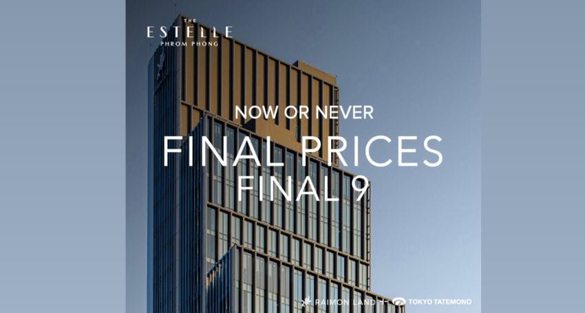 โอกาสสุดท้ายที่ห้ามปล่อยหลุดมือ กับแคมเปญแรง ‘THE FINAL PRICES. THE FINAL 9.’ ที่ “ดิ เอสเทลล์ พร้อมพงษ์” คอนโดมิเนียมอัลตร้าลักชัวรี่ พร้อมเข้าอยู่ (The Estelle Phrom Phong) จาก บริษัท ไรมอน แลนด์ จำกัด (มหาชน) หรือ RML กับ 9 ยูนิตสุดท้าย ที่มาพร้อมราคาสุดพิเศษแบบที่ไม่เคยนำเสนอที่ไหนมาก่อน เริ่มต้นเพียง 256,000 บาทต่อตารางเมตร*