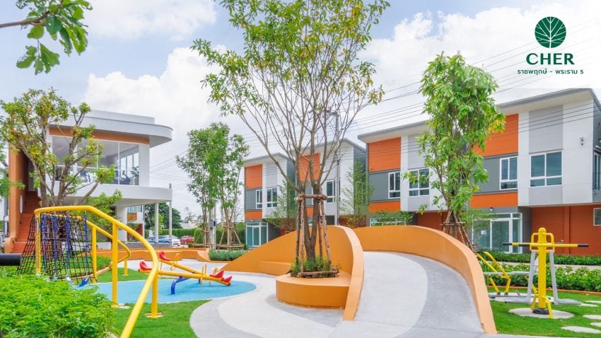 “โครงการเฌอ ราชพฤกษ์ – พระราม 5″ เป็นโครงการทาวน์โฮม 2 ชั้น บนพื้นที่ 12-2-22.2 ไร่ จำนวน 133 ยูนิต โดยได้รับการออกแบบโครงการภายใต้คอนเซ็ปต์ Modern yet traditional นำเสนอความเป็นนนทบุรีผ่านวงเวียนพระราม 5 เครื่องปั้นดินเผาที่มีชื่อเสียงมาอย่างยาวนาน และคลื่นน้ำของแม่น้ำเจ้าพระยา โดยได้นำ element ของความโค้ง การเล่นระดับ คลื่นน้ำ และอิฐแดง เป็นอีกหนึ่งจุดเล็ก ๆ ที่เราตั้งใจออกแบบสอดแทรกการดีไซน์โครงการทั้งตัวบ้านและส่วนกลาง พร้อมออกแบบฟังก์ชันบ้านอย่างใส่ใจทุกรายละเอียดและใช้ประโยชน์ได้จริง โดยโครงการประกอบด้วยแบบบ้าน 3 รูปแบบ ได้แก่ 1.JUNIPER (จูนิเพอร์) ที่มีขนาดหน้ากว้าง 5.2 เมตร มีพื้นที่ใช้สอย 99.4 ตารางเมตร 2.MYRTLE (ไมร์เทิล) ขนาดหน้ากว้าง 5.7 เมตร มีพื้นที่ใช้สอย 124.3 ตารางเมตร และ 3.HAWTHORN (ฮอธอร์น) หน้ากว้าง 8 เมตร และมีพื้นที่ใช้สอย 154.5 ตารางเมตร และยังเพิ่มความพิเศษให้กับทั้ง 3 แบบบ้าน ด้วยรั้วหลังบ้านที่มีกำแพงสูงทั้ง 3 ด้าน เพื่อเพิ่มความเป็นส่วนตัวแก่ผู้พักอาศัย โดยเตรียมเปิดขายรอบพรีเซลในเดือนกันยายน 2566 นี้