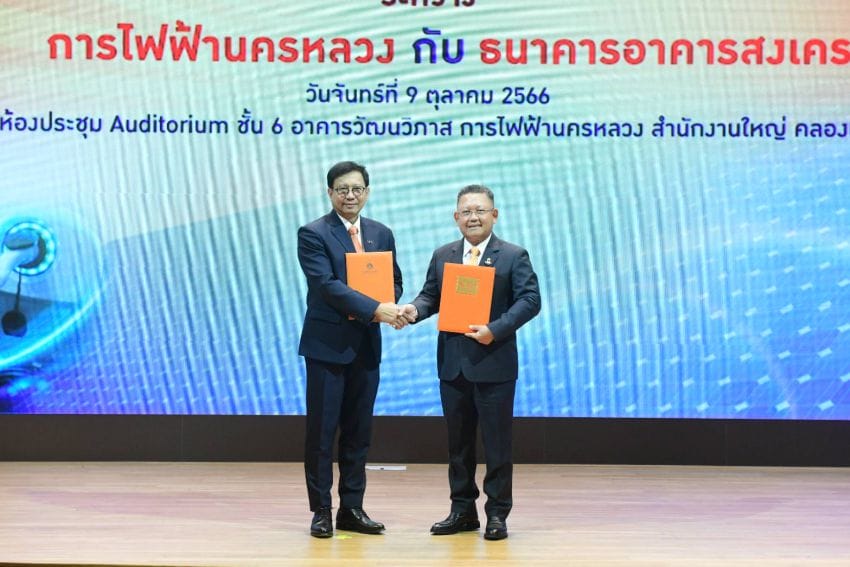 นายจาตุรงค์ สุริยาศศิน รองผู้ว่าการการไฟฟ้านครหลวง (กฟน.)หรือ MEA พร้อมด้วย นายวิทยา แสนภักดี รองกรรมการผู้จัดการ กลุ่มงานการตลาด ธนาคารอาคารสงเคราะห์ (ธอส.) ร่วมพิธีลงนามบันทึกข้อตกลงความร่วมมือการส่งเสริมผลิตภัณฑ์ และบริการของการไฟฟ้านครหลวง ร่วมกับโครงการสินเชื่อพร้อมใช้ และโครงการ GHB Big Family ระหว่าง MEA และ ธอส. ณ ห้อง Auditorium ชั้น 6 อาคารวัฒนวิภาส การไฟฟ้านครหลวง สำนักงานใหญ่ คลองเตย