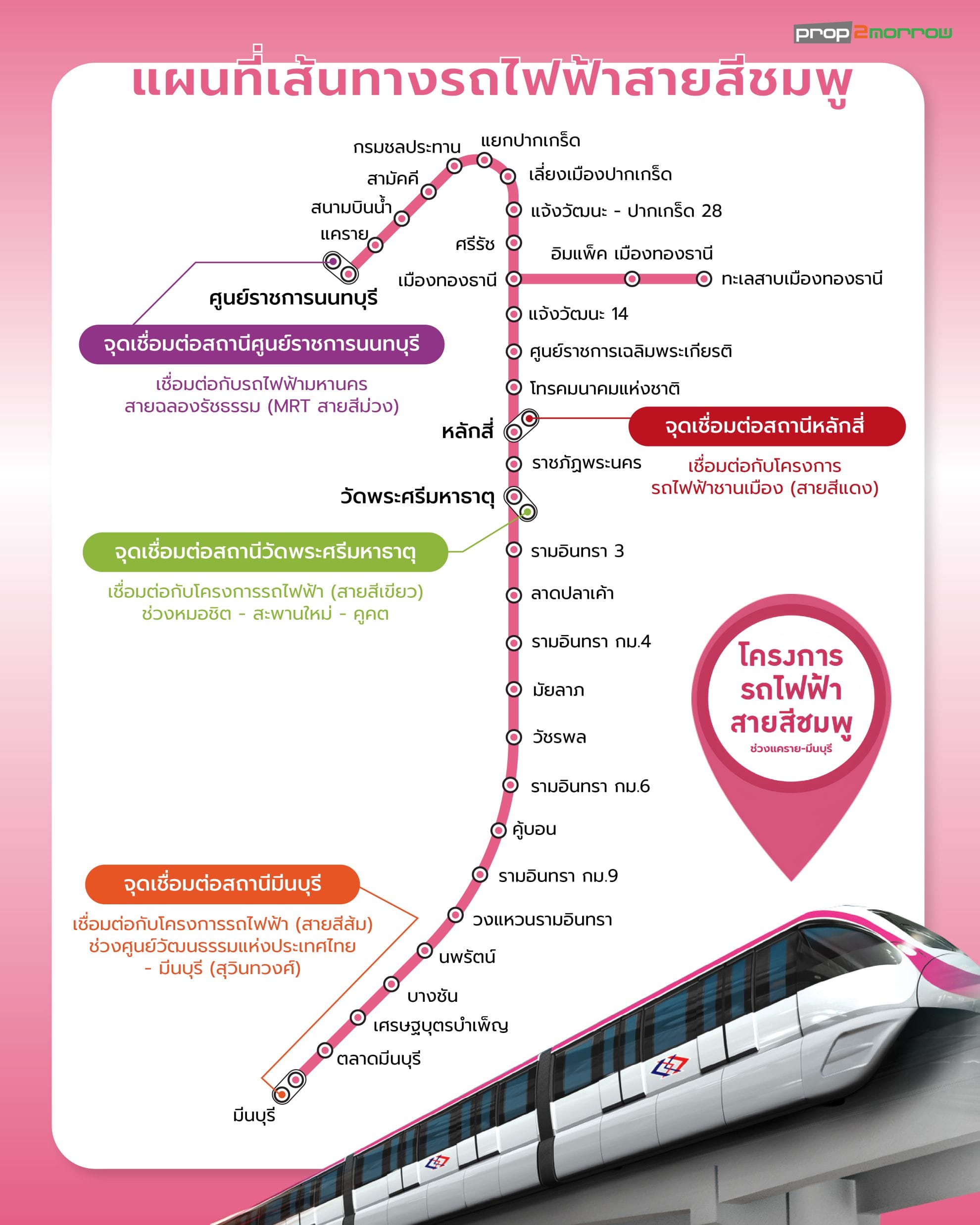 ทั้งนี้รถไฟฟ้ามหานคร สายสีชมพูฯ ถือเป็นรถไฟฟ้าโมโนเรลสายที่ 2 ของประเทศไทย ที่จะช่วยเชื่อมต่อการเดินทางของประชาชนในพื้นที่กรุงเทพฯฝั่งตะวันออก ฝั่งเหนือ และจังหวัดนนทบุรี เข้าสู่พื้นที่ใจกลางเมืองได้สะดวก และเป็นรถไฟฟ้าสายที่ 2ของจังหวัดนนทบุรี ต่อจากรถไฟฟ้า MRT สายสีม่วงที่เปิดให้บริการไปก่อนหน้านี้