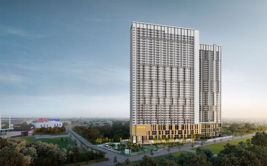 โครงการ “NOWW MEGA” ตั้งอยู่บนเนื้อที่ 6 ไร่ เป็นอาคารชุดพักอาศัยสูง 45 ชั้น 2 อาคาร จำนวน 2,030 ยูนิต พร้อมห้องชุดเพื่อการพาณิชย์อีก 10 ยูนิต มีแบบห้องตั้งแต่ 1-2 ห้องนอน พื้นที่ใช้สอยขนาด 25.08 – 59.31 ตารางเมตร. จัดเต็มด้วยพื้นที่ส่วนกลางภายในโครงการที่มีทั้งหมด 29 ฟังก์ชัน อาทิ Live Hall ส่วนกลางแนวคิดใหม่, Co Living Space พร้อมฟรี High Speed Internet, Joggling track กว่า 400 เมตร พร้อมพื้นที่สีเขียวกว่า 4 ไร่ และสามารถชมวิวเมืองได้ 360 องศา โดยคิดค่าส่วนกลางเริ่มที่ 29 บาทต่อตารางเมตร