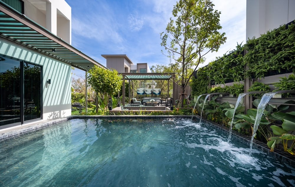 - พูลวิลล่า (TRENDA) 4 ห้องนอน 6 ห้องน้ำ 4 ที่จอดรถ ที่ดิน 87.4-135.3 ตร.ว. พื้นที่ใช้สอย 560 ตารางเมตร มาพร้อมพูลวิลล่าสระว่ายน้ำส่วนตัวระบบเกลือใจกลางตัวบ้าน ถูกออกแบบให้ห้องมัลติฟังก์ชันรูม (Multifunction Room) สามารถเชื่อมต่อกับสระว่ายน้ำ ห้องนั่งเล่นและห้องรับประทานอาหาร เมื่อเปิดประตูด้านข้างออกจะกลายเป็นการเชื่อมต่อพื้นที่กว้างระหว่างมุมพักผ่อนด้านนอกและด้านใน