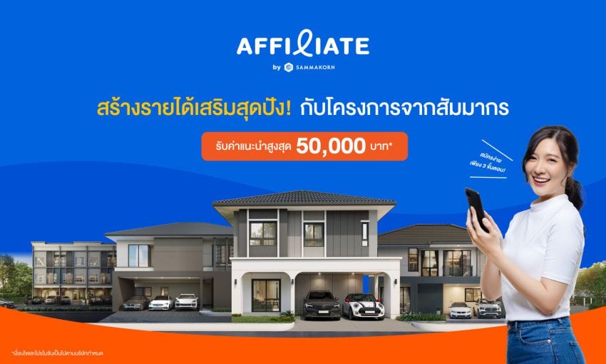 สำหรับโครงการ “Affiliate by Sammakorn” เป็นโปรแกรมสร้างรายได้ง่ายๆ เพียงแค่เหล่าครีเอเตอร์ร่วมสร้างคอนเทนต์โปรโมทโครงการของ “สัมมากร” ที่เข้าร่วม พร้อมแนบลิงก์ที่ได้รับจากบริษัท เผยแพร่ในช่องทางโซเชียลมีเดียของตนเอง และหากมีคนทําสัญญาและโอนกรรมสิทธิ์จากลิงก์ที่นําไปโปรโมท “สัมมากร” จะมอบค่าแนะนำสูงสุดถึง 50,000 บาท* เเละเมื่อนำลิงก์ที่ได้ไปโปรโมทเเล้ว สามารถติดตามรายงานผลที่ทาง “สัมมากร” จะส่งอัพเดตให้ในทุกสัปดาห์ โดยปัจจุบันมีโครงการที่เข้าร่วมมีทั้งหมด 8 โครงการที่ครอบคลุมทุกเซ็กเมนต์ทั้งบ้านเดี่ยว บ้านแฝด และทาวน์โฮม ได้แก่ อนาพนา ลาดกระบัง, สัมมากร รังสิต คลอง 7, ไพร์ม 7 รังสิต นครนายก, มิตติ ชัยพฤกษ์-วงแหวน, มิตติ ราชพฤกษ์ 346, มิตติ ลำลูกกา-คลอง 6, สัมมากร อเวนิว รามอินทรา-วงแหวน และสัมมากร อเวนิว สุวรรณภูมิ