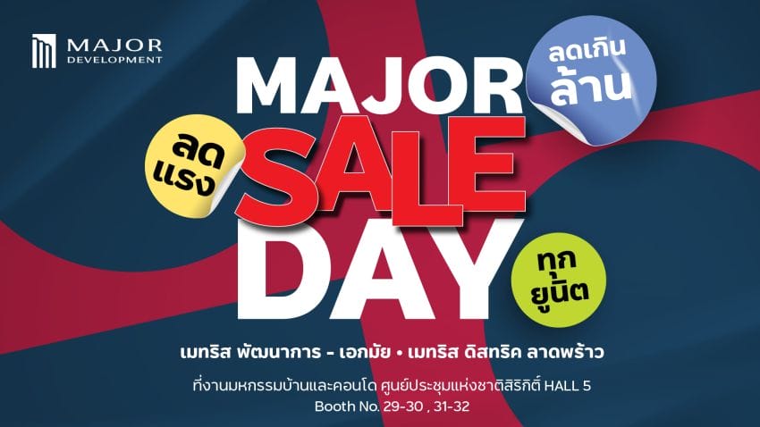 บริษัท เมเจอร์ ดีเวลลอปเม้นท์ จำกัด (มหาชน) ผู้นำด้านการพัฒนาธุรกิจอสังหาริมทรัพย์ระดับลักชูรีและคอนโดมิเนียมเลี้ยงสัตว์ได้ (Pet Family Residences) ประเดิมซัมเมอร์ส่งโปรสุดฮอตสยบทุกดีกรีความร้อนกับ MAJOR SALE DAY การันตีความเล่นใหญ่ #ลดเกินล้าน #ลดแรงทุกยูนิต ในงานมหกรรมบ้านและคอนโด ครั้งที่ 45 ณ ศูนย์ประชุมแห่งชาติสิริกิติ์ ระหว่างวันที่ 21-24 มีนาคมนี้ กับ 2 โครงการสุดฮอตบนทำเลศักยภาพ เลี้ยงสัตว์ได้ 100% ทุกโครงการ มาพร้อมสิทธิพิเศษสุดเอ็กซ์คลูซีฟ และ Facilities สำหรับสัตว์เลี้ยงแบบจัดเต็ม