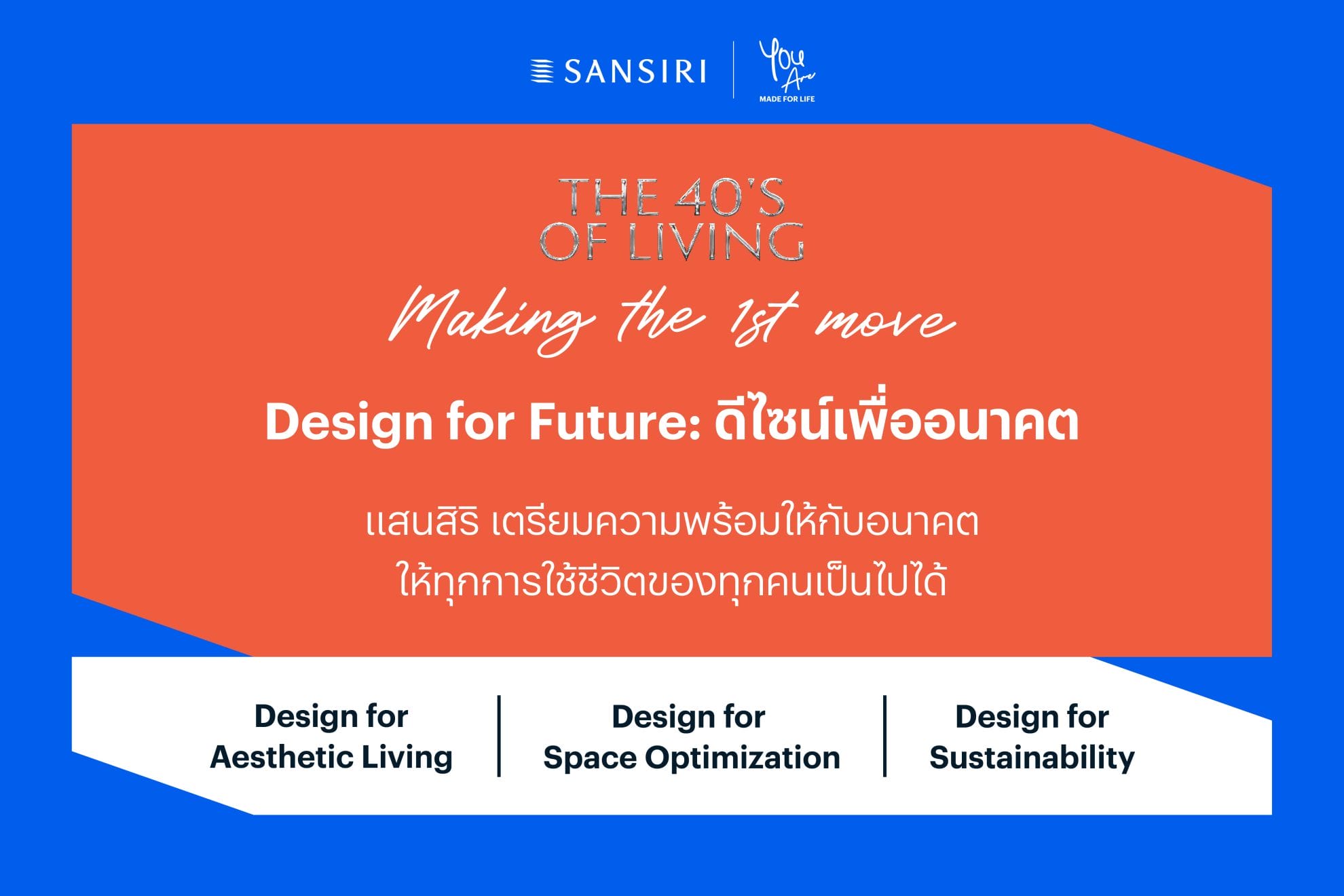 Sansiri 40 years ตอกย้ำผู้นำแบรนด์อันดับหนึ่งของคนอยากมีบ้าน และผู้นำด้านดีไซน์ ปลดล็อกทุกความเป็นไปได้ เตรียมพร้อมการใช้ชีวิตในอนาคต ผ่านแนวคิดของแบรนด์ครั้งใหญ่ “Design for Future : ดีไซน์เพื่ออนาคต” เซ็ตมาตราฐานใหม่ สร้างผลงานสู่ World Class Design เตรียมสร้างเทรนด์การอยู่อาศัยใหม่อย่างแตกต่าง ส่ง 4 แบรนด์ใหม่ ด้วยดีไซน์ที่เหนือกว่า ชวนทุกเจนเนอเรชั่น ค้นหาความหมายใหม่ๆ ของอนาคตที่สวยงาม พิสูจน์พลังไอเดียผู้นำ กับแบรนด์แคมเปญล่าสุด เร็วๆ นี้