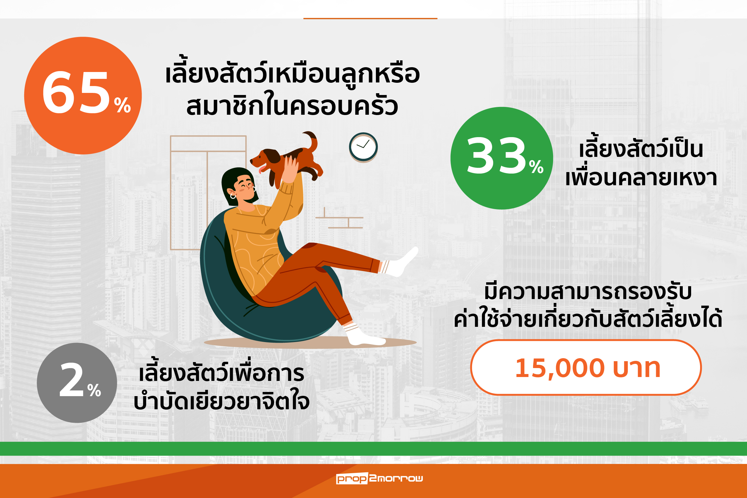 ผลการสำรวจดังกล่าวสอดคล้องกับผลวิจัยของมหาลัยมหิดลและ The 1 Insight ที่ระบุว่า ปัจจุบันคนไทย สัดส่วนมากกว่า 65% เลี้ยงสัตว์เหมือนลูกหรือเป็นสมาชิกในครอบครัวที่เรียกว่า “Pet Parent” ในขณะที่ 33% เลี้ยงสัตว์เป็นเพื่อนคลายเหงา และ 2% เลี้ยงสัตว์เพื่อการบำบัดเยียวยาจิตใจ มีความสามารถรองรับค่าใช้จ่ายเกี่ยวกับสัตว์เลี้ยงได้ 15,000 บาทต่อปี