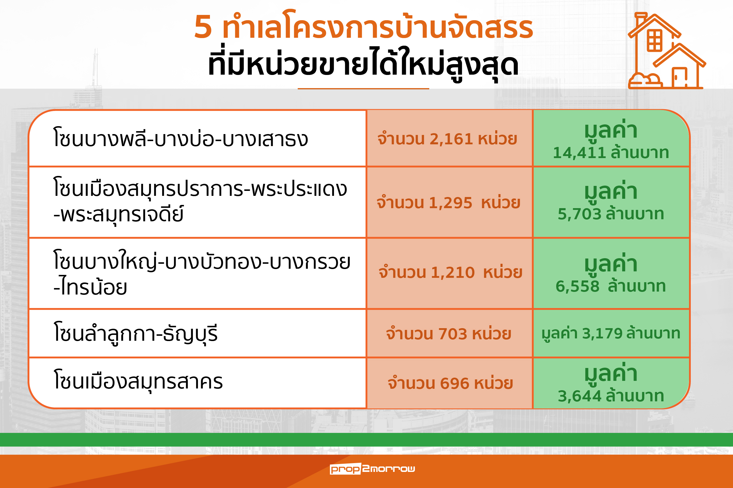ส่วนยอดขายได้ใหม่มีจำนวน 9,679 ยูนิต ลดลง -16.1% มูลค่า 62,863 ล้านบาท โดย 5 ทำเลที่มีหน่วยขายได้ใหม่สูงสุด ได้แก่ โซนบางพลี-บางบ่อ-บางเสาธง จำนวน 2,161 ยูนิต มูลค่า 14,411 ล้านบาท โซนเมืองสมุทรปราการ-พระประแดง-พระสมุทรเจดีย์ จำนวน 1,295 ยูนิต มูลค่า 5,703 ล้านบาท โซนบางใหญ่-บางบัวทอง-บางกรวย-ไทรน้อย จำนวน 1,210 ยูนิต มูลค่า 6,558 ล้านบาท โซนลำลูกกา-ธัญบุรี จำนวน 703 ยูนิต มูลค่า 3,179 ล้านบาท และโซนเมืองสมุทรสาคร จำนวน 696 ยูนิต มูลค่า 3,644 ล้านบาท