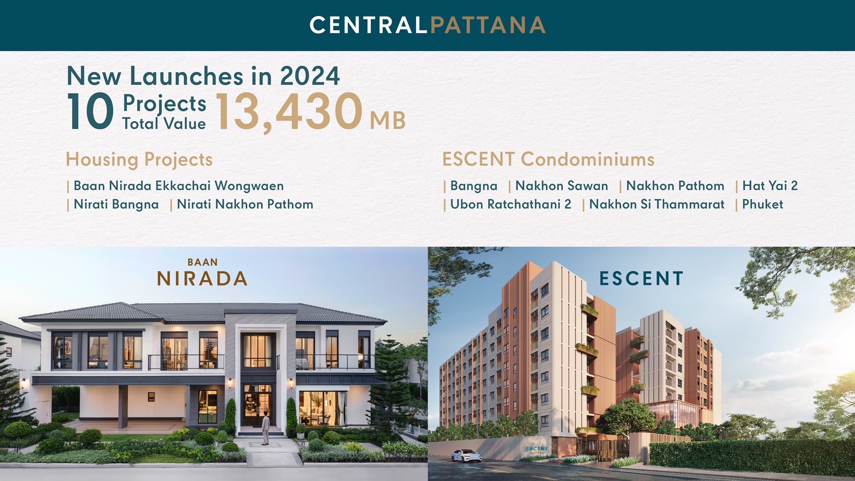 เซ็นทรัลพัฒนา เผยความแข็งแกร่งธุรกิจ Central Pattana Residence เติบโตแข็งแกร่งต่อเนื่อง สร้างรายได้และกำไรสูงเป็นอันดับ 2 ของธุรกิจกลุ่มเซ็นทรัลพัฒนา วางเป้ารายได้ปี 2567 โตขึ้น 20% อยู่ที่ 7,000 ล้านบาท พร้อมเดินหน้าเปิดตัวใหม่ 10 โครงการทั้งแนวราบและแนวสูง มูลค่าโครงการรวม 13,430 ล้านบาท