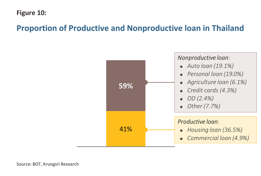 สัดส่วนหนี้ครัวเรือนต่อจีดีพีเพียงอย่างเดียวคงใช้เป็นตัวบอกอันตรายต่อระบบเศรษฐกิจไม่ได้ แต่จะต้องดูลึกลงไปถึงองค์ประกอบของหนี้ครัวเรือนว่ามีสินเชื่อประเภทใดที่คุกคามต่อเสถียรภาพของระบบการเงินและดูลงไปว่า สินเชื่อแต่ละประเภทมี NPL หรือ หนี้ที่ไม่ก่อให้เกิดรายได้ หรือ หนี้ที่ค้าง ชำระเกิน 90 วันหรือเป็นอันตรายมากน้อยเพียงใด