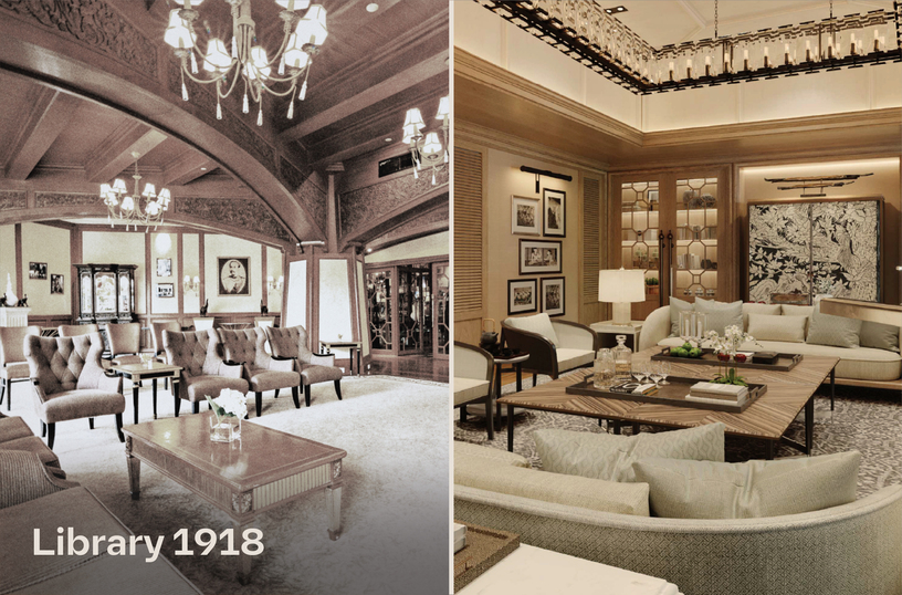 ก่อนที่จะมาเป็น ห้องไลบรารี่ นั้น ห้องนี้เคยเป็นห้องอาหารอิตาเลียน และห้องจัดเลี้ยงนํ้าชาที่จัดถวายเป็นพระบรมราชานุสรณ์ ในรัชกาลที่ 6 ภายหลังเมื่อได้ปรับมาเป็นห้องประชุมจึงได้ออกแบบให้ภายในห้องตกแต่งด้วยหัตถศิลป์งานฉลุไม้ที่สง่างามประดับตกแต่งด้วยพระบรมฉายาลักษณ์ และมีข้าวของเครื่องใช้ในองค์รัชกาลที่ 6 ซึ่งของสะสมต่างๆ เหล่านี้ถือเป็นการเทิดพระเกียรติ องค์รัชกาลที่ 6 ในฐานะผู้สร้างเมืองจำลองดุสิตธานีขึ้น เพื่อใช้ทดลองการปกครองระบอบประชาธิปไตยในปี พ.ศ. 2461 (ค.ศ. 1918) ห้องดังกล่าวได้ถูกใช้สำหรับการจัดงานขนาดเล็กในโอกาสต่างๆ อาทิ พิธีหมั้นแบบไทย การจัดเลี้ยงรับรองเป็นการส่วนพระองค์ แก่ราชวงศ์ และบุคคลสำคัญชั้นนำทั้งจากไทยและต่างประเทศ