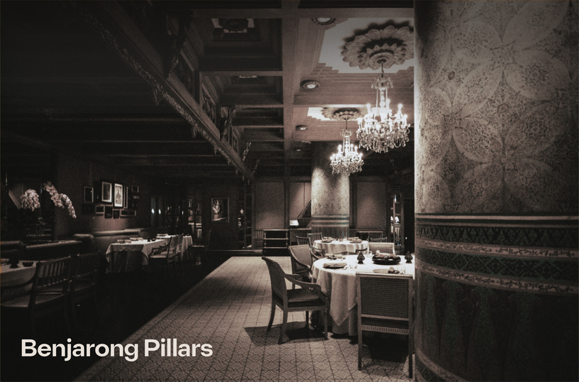 อีกหนึ่งสิ่งสำคัญที่อยู่คู่โรงแรมดุสิตธานี กรุงเทพ มานาน 50 กว่าปีนั้นคือ เสาเบญจรงค์ เสาเอกขนาดใหญ่ 2 ต้น ที่มีนํ้าหนักรวมกว่า 10 ตัน โดยนับเป็นผลงานศิลปะที่ดำรงไว้เพื่อสะท้อนความเป็นเมืองดุสิตธานี โดยได้ถูกนำกลับมาเป็นอัตลักษณ์เพื่อเชื่อมรอยต่อของประวัติศาสตร์อีกครั้ง ด้วยความวิจิตรของตัวเสาที่ได้ถูกวาดลวดลายจิตรกรรมไทยไว้อย่างประณีต นับเป็นผลงานระดับมาสเตอร์พีซ โดย “ท่านกูฏ” อาจารย์ไพบูลย์ สุวรรณกูฏ ศิษย์รุ่นแรกของอาจารย์ศิลป์ พีระศรี ที่ใช้เวลาค้นคว้าหาข้อมูล และถอดความหมายจากภาพจิตรกรรมวัดโพธิ์ ทั้งการใช้สี และลวดลายก่อนลงมือเพนต์จริง นับว่าเป็นผลงานที่เชื้อเชิญให้ผู้ที่มาเยือนเข้ามาสัมผัสวัฒนธรรมไทยอย่างเต็มเปี่ยมตามที่ทางโครงการมุ่งมั่นรักษาคุณค่าความเป็นไทยแบบดั้งเดิมไว้