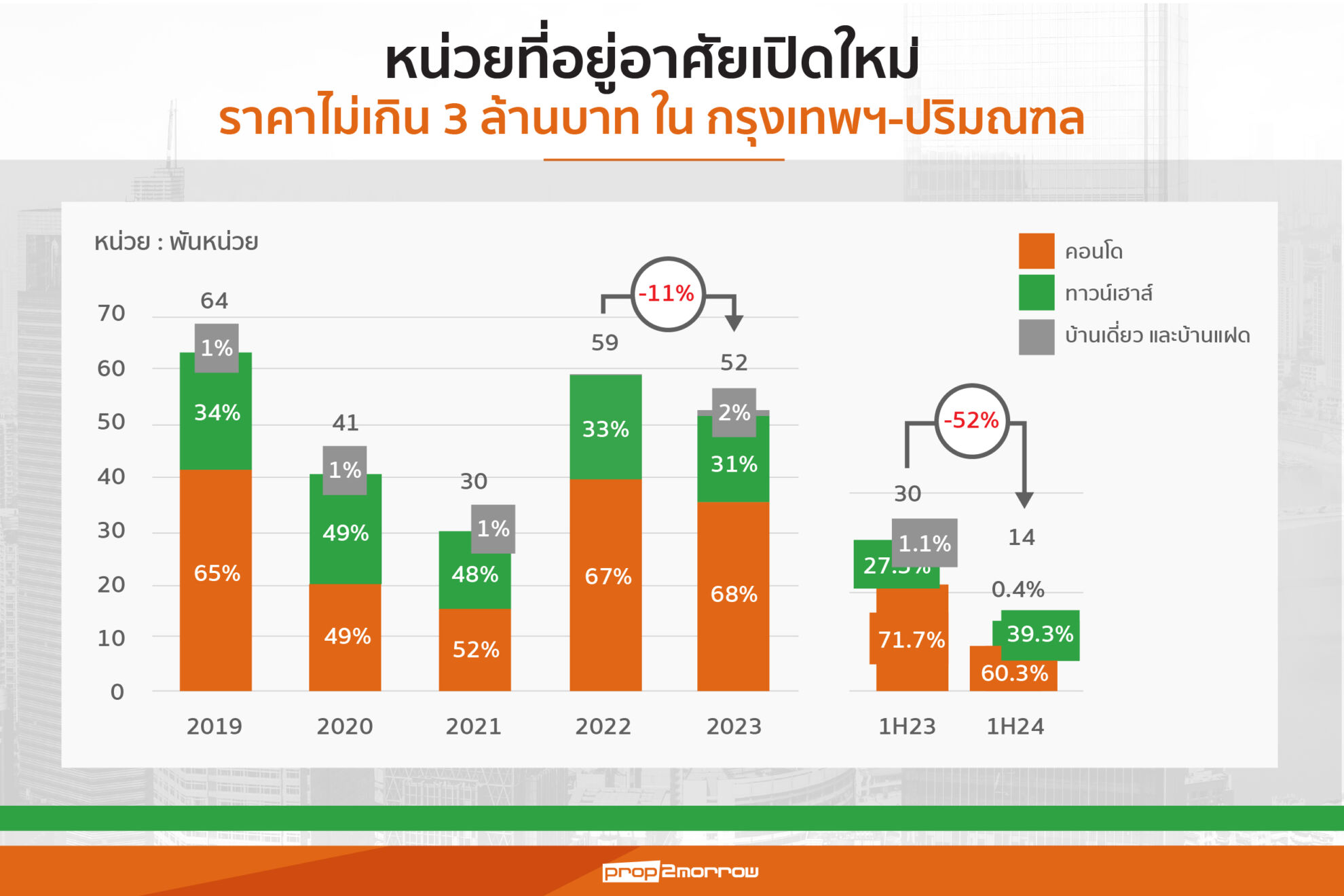 เนื่องจากหน่วยโอนกรรมสิทธิ์ที่อยู่อาศัยราคาไม่เกิน 3 ล้านบาทในพื้นที่กรุงเทพฯ-ปริมณฑลมีสัดส่วนเฉลี่ย 2 ใน 3 ของหน่วยโอนในกรุงเทพฯ-ปริมณฑลทั้งหมด ส่วนมูลค่าการโอนกรรมสิทธิ์มีสัดส่วนเฉลี่ย 1 ใน 3 ของมูลค่าโอนในกรุงเทพฯ-ปริมณฑลทั้งหมด โดยทั้งหน่วยโอนกรรมสิทธิ์และมูลค่าโอนกรรมสิทธิ์ของตลาดที่อยู่อาศัยราคาไม่เกิน 3 ล้านบาทในปัจจุบันกว่า 85% มาจากการโอนกรรมสิทธิ์ในประเภทคอนโดมิเนียม และทาวน์เฮาส์