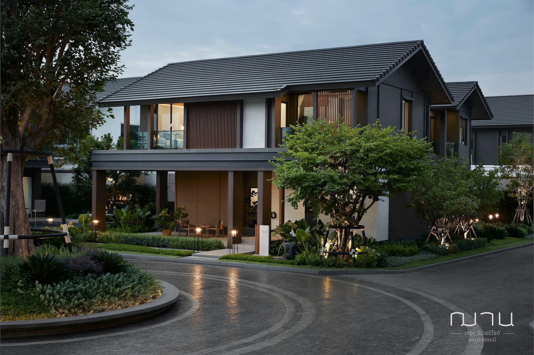 บ้านเดี่ยวของ ฌาน เดอะ ริเวอร์ไซด์ บรมราชชนนี ออกแบบในสไตล์ Modern Oriental สะท้อนกลิ่นอายวิถีชีวิตในชุมชนริมแม่น้ำท่าจีน เบลนด์เข้ากับความเรียบหรู คลาสสิก และความทันสมัย ประกอบด้วยบ้าน 4 แบบ ได้แก่