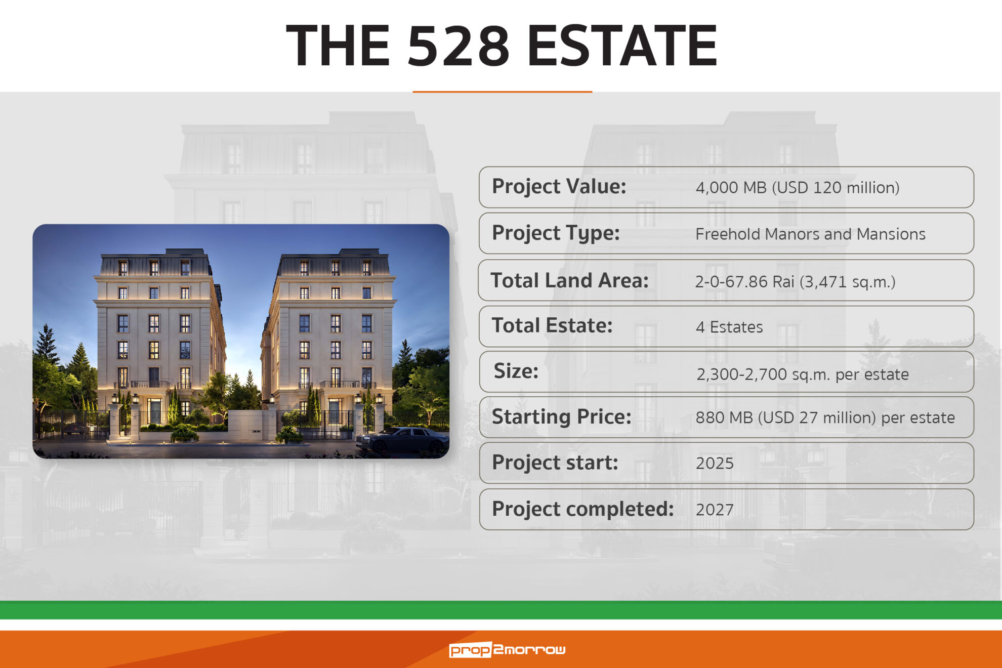 ไรมอน แลนด์เปิดตัวคฤหาสน์อัลตร้าลักชัวรี ‘THE 528 ESTATE’ จำนวน 4 ยูนิต มูลค่าโครงการกว่า 4,000 ล้านบาท เป็นบ้านสูง 6ชั้นพร้อมชั้นใต้ดิน 1 ชั้น ความสูงทียบเท่าคอนโดฯโลว์ไรส์ พื้นที่ใช้สอยอลังการ 2,300-2,700 ตารางเมตร ราคาขายเริ่มต้น 880 ล้านบาท พิกัดที่ตั้งซอยสุขุมวิท 28 จับมือบาคาร่าต์ แบรนด์ไลฟ์สไตล์ที่มีชื่อเสียงระดับโลกด้านการผลิตเครื่องแก้วเจียระไนชั้นสููงจากฝรั่งเศส เพื่อตกแต่งคฤหาสน์ทุกหลังด้วยคอลเลกชันพิเศษ พร้อมดึงลิสต์ ซอเธอบี้ส์ อินเตอร์เนชั่นแนล เรียลตี้ (ประเทศไทย)วางกลยุทธ์การขาย เจาะกลุ่มลูกค้าที่มีความมั่งคั่งสูงทั้งคนไทยและต่างชาติ
