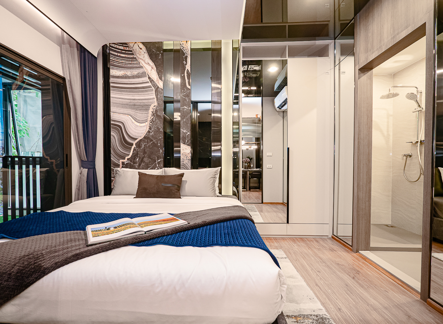 ภายในห้องนอนพื้นที่กว้าง สามารถเปิดประตูบานสไลด์ เพื่อให้ห้องกว้างขึ้น และโครงการยังให้บิ้วอินตู้เสื้อผ้าหลังใหญ่ สามารถเก็บของได้เยอะ ระเบียงจะอยู่ในส่วนของห้องนอน สามารถชมวิวเอกมัยได้จากในห้องนอนเลย